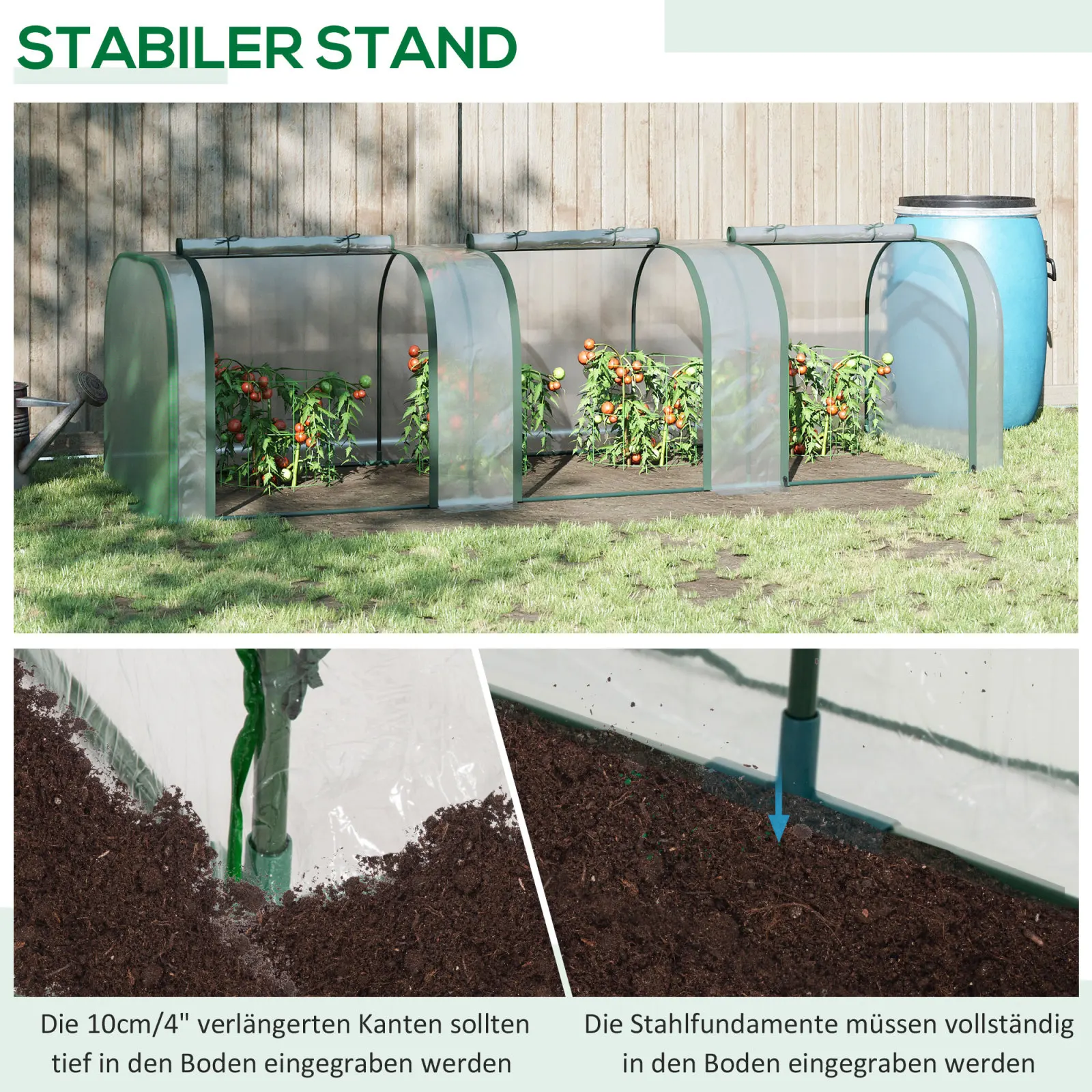 1.Jardiner toute l'année : notre petite serre tunnel est la solution idéale pour prolonger la saison de croissance.En même temps, vous pouvez prendre soin efficacement de vos plantes et les protéger des températures extérieures difficiles.