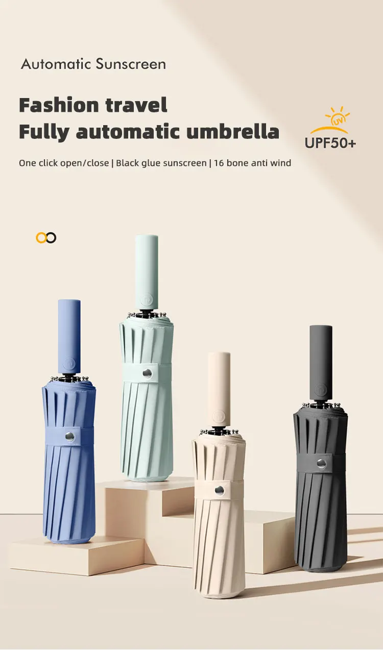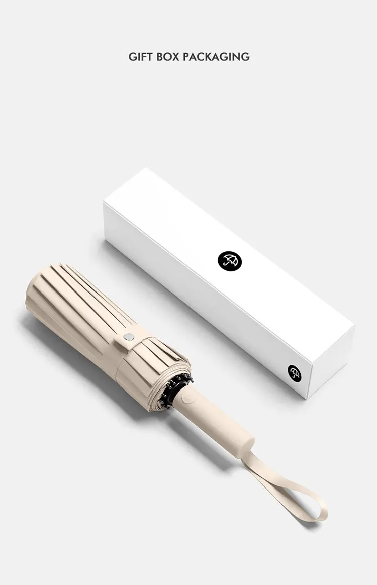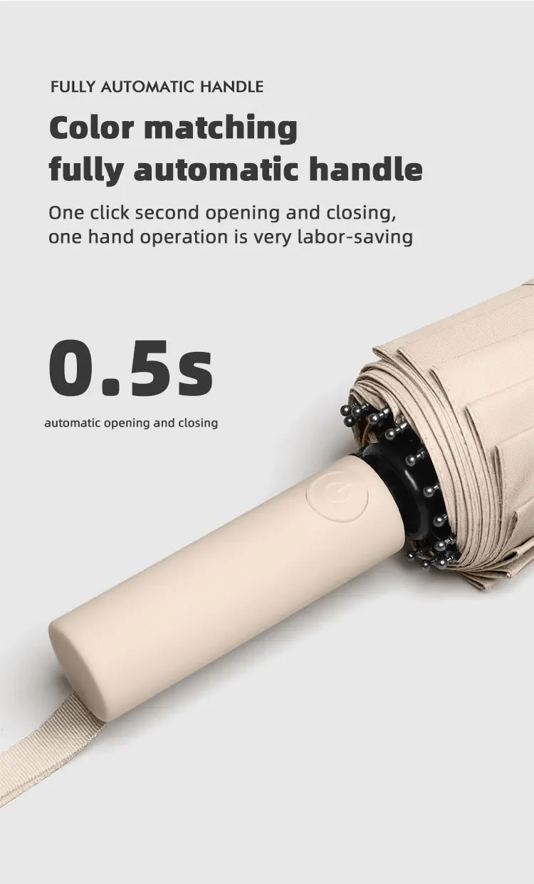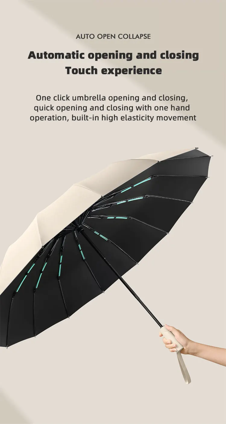 4. Fonctionnement entièrement automatique: Le parapluie dispose d'un mécanisme entièrement automatique pour une ouverture et une fermeture faciles en appuyant simplement sur un bouton.