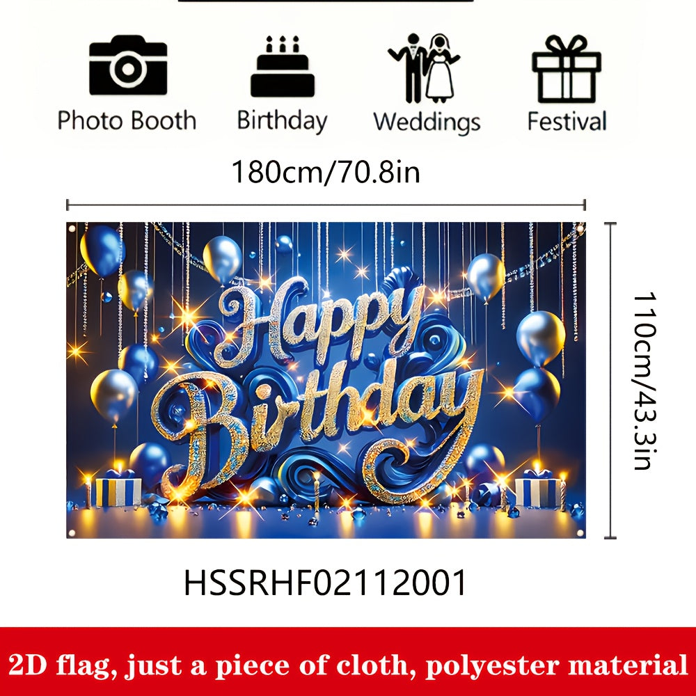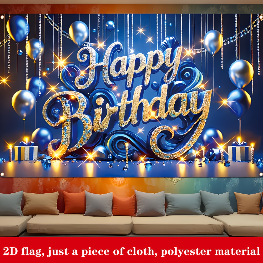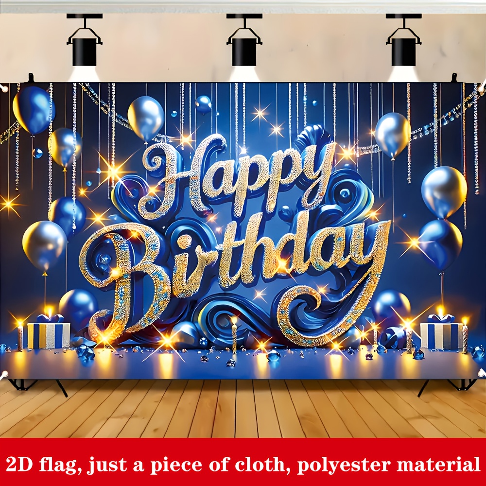Bannière Anniversaire Bleue et Dorée – Décoration Fête en Polyester .