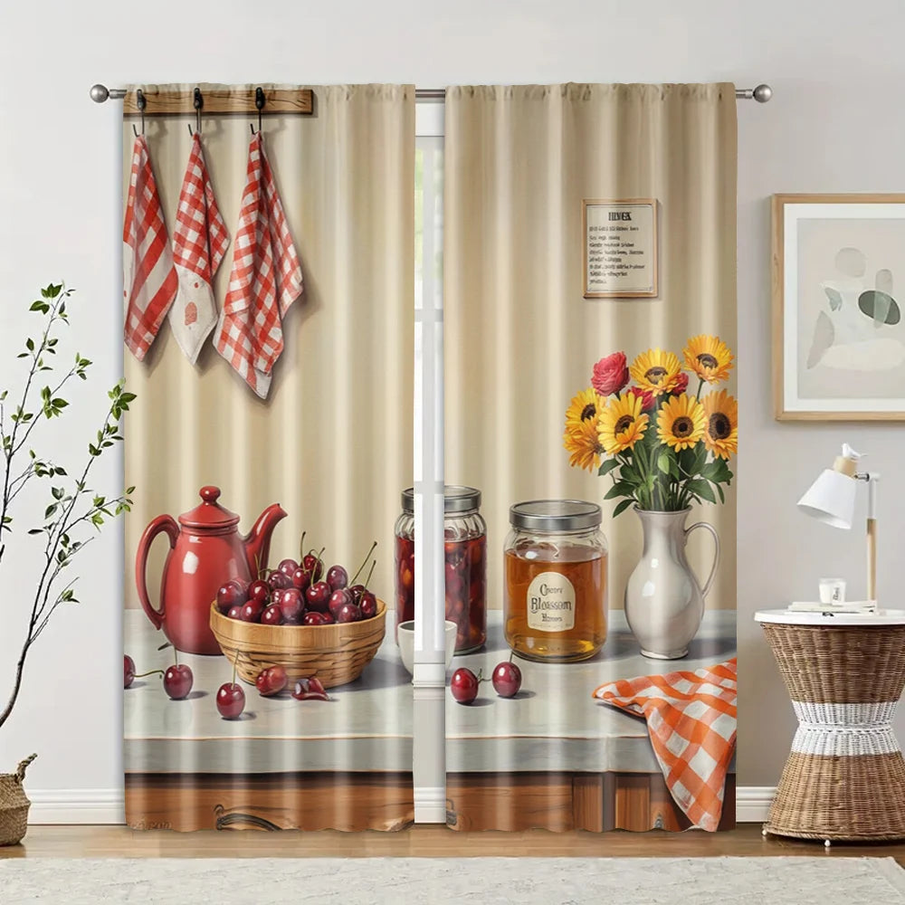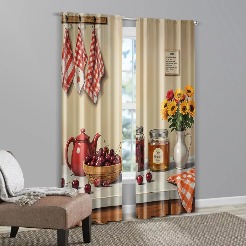 2 pièces rideaux contemporains 2D, tissu polyester durable, sans tige, polyvalents