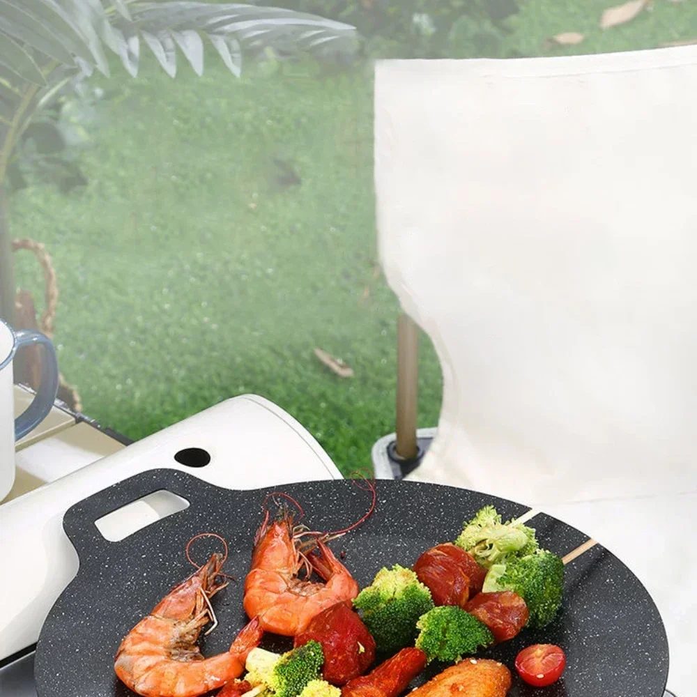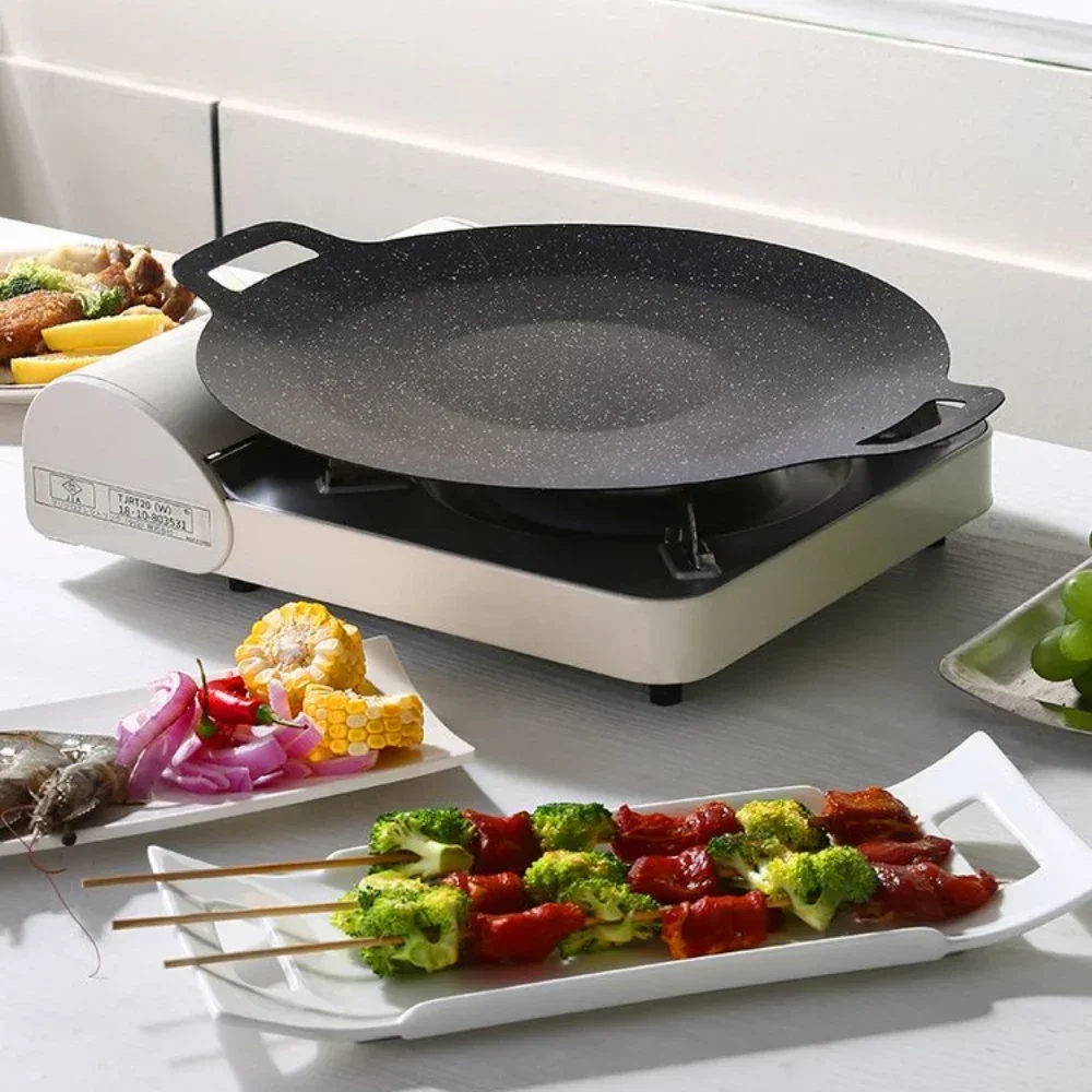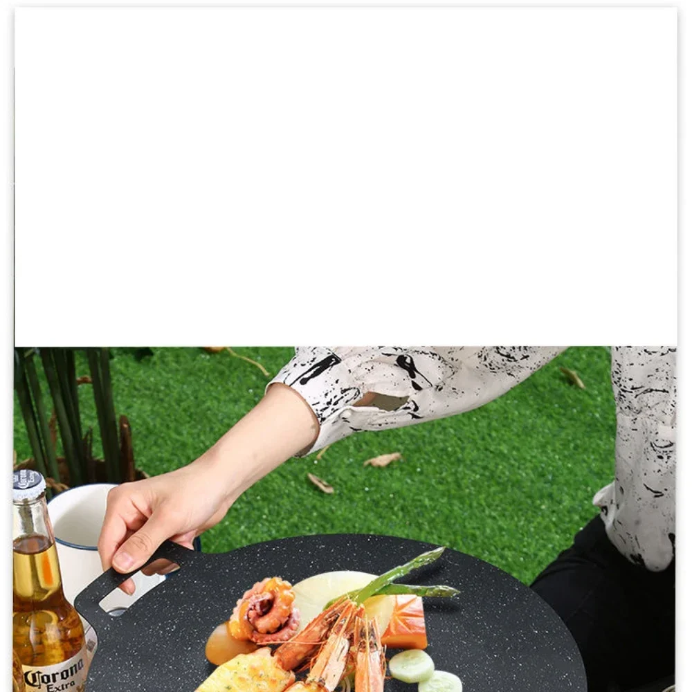 Poêle à barbecue 2025, poêle ronde en fonte antiadhésive, sans fumée, portable, pour cuisson plein air, camping, pique-nique et friture