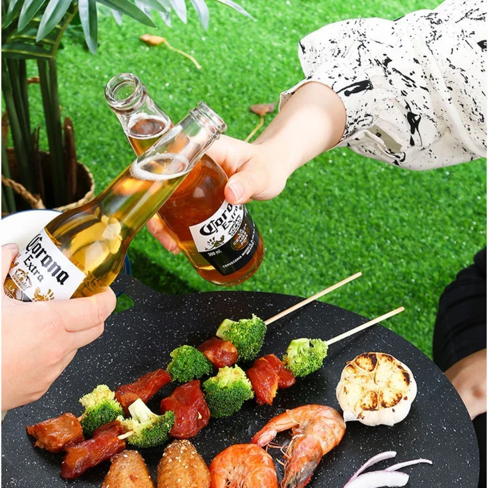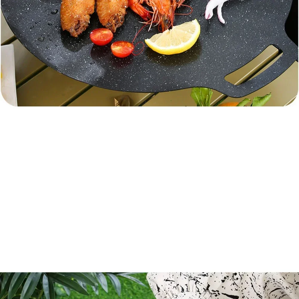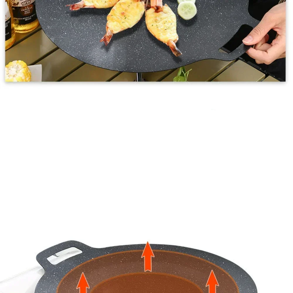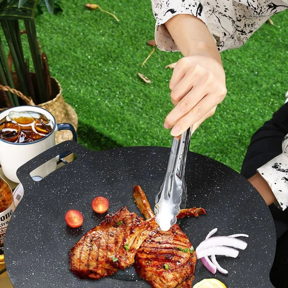 Poêle à barbecue 2025, poêle ronde en fonte antiadhésive, sans fumée, portable, pour cuisson plein air, camping, pique-nique et friture