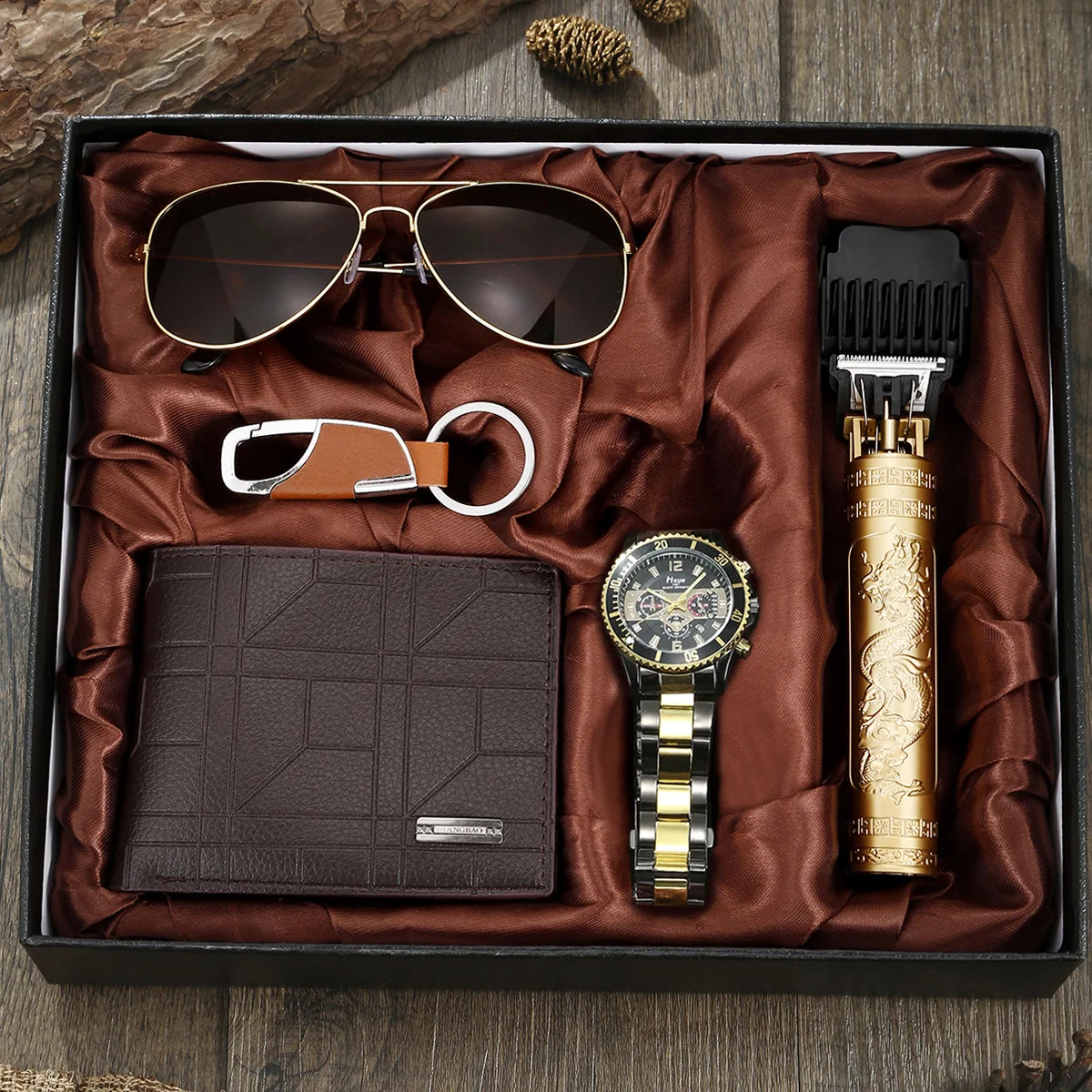 5pcs New Mens Watch Gift Box Set: Wallet Set for Men Gift Box