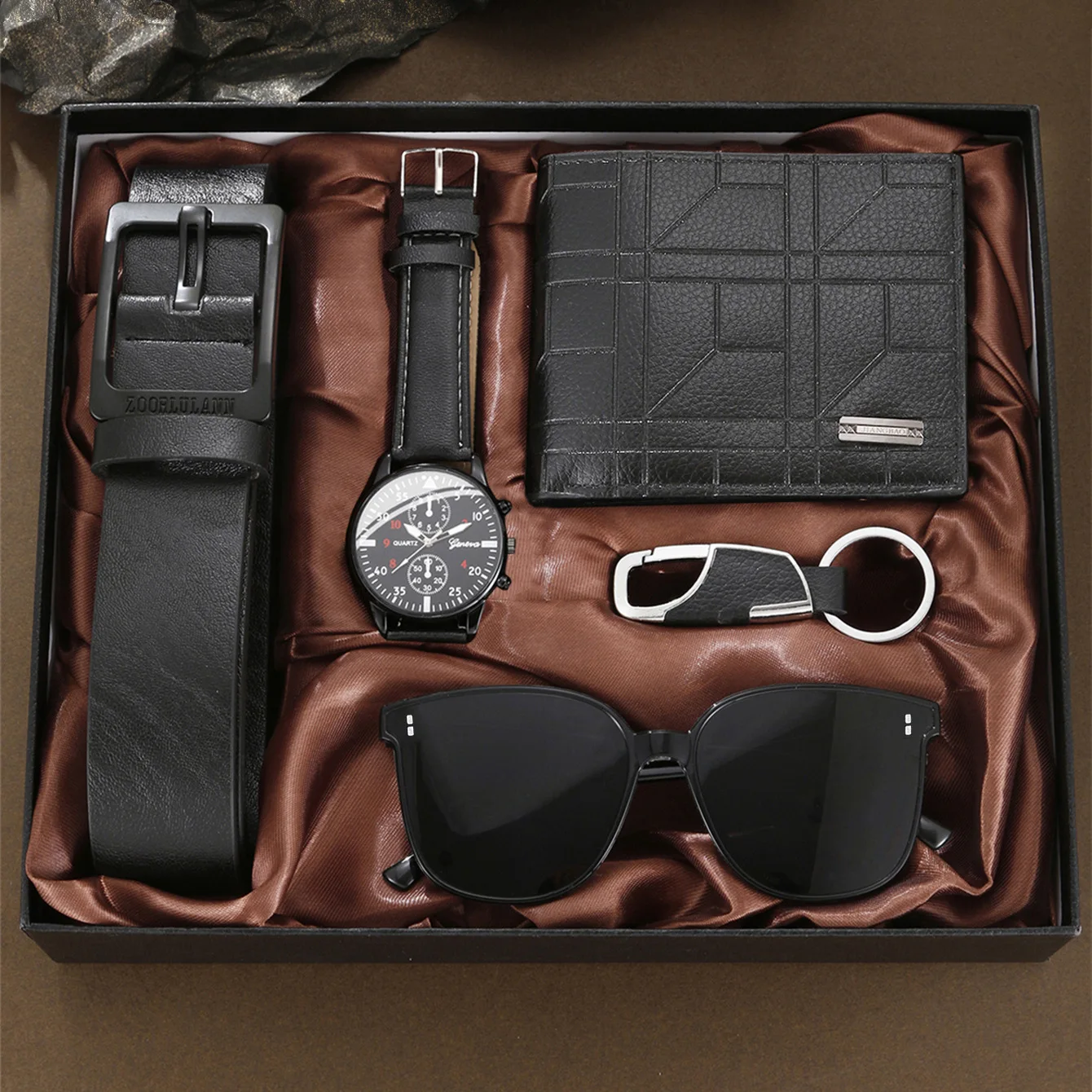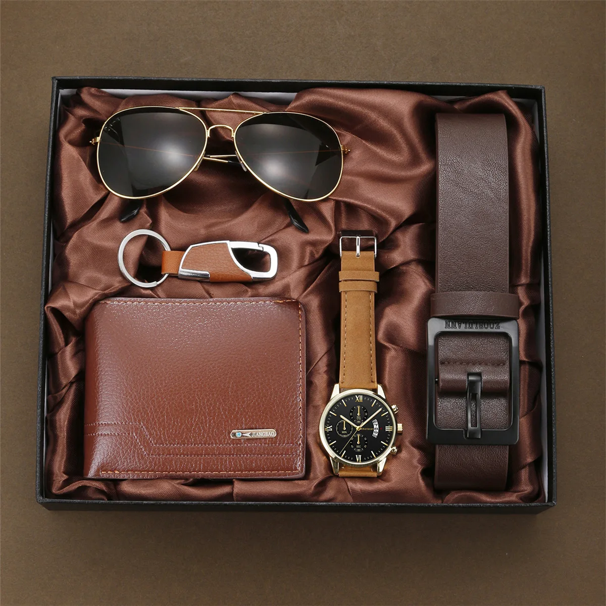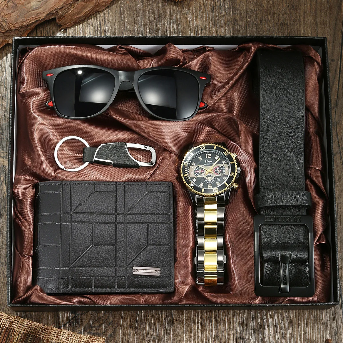 5pcs Watch Set for Men in Gift Box: Wallet and Belt Gift Set for Men