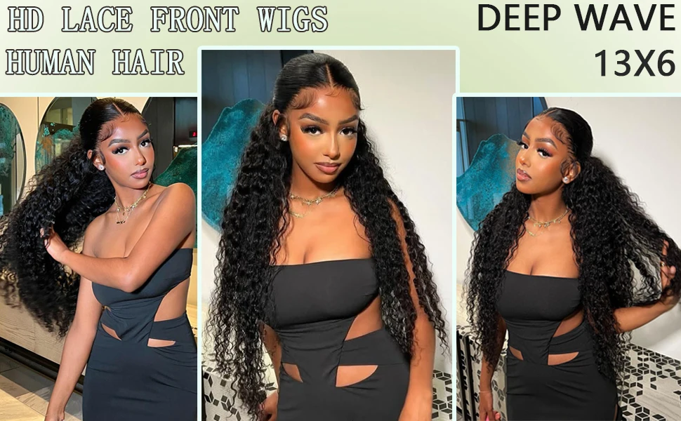 Perruques sans colle ondulées profondes 13X6, cheveux humains pré-épilés, pré-coupés, spectacle client