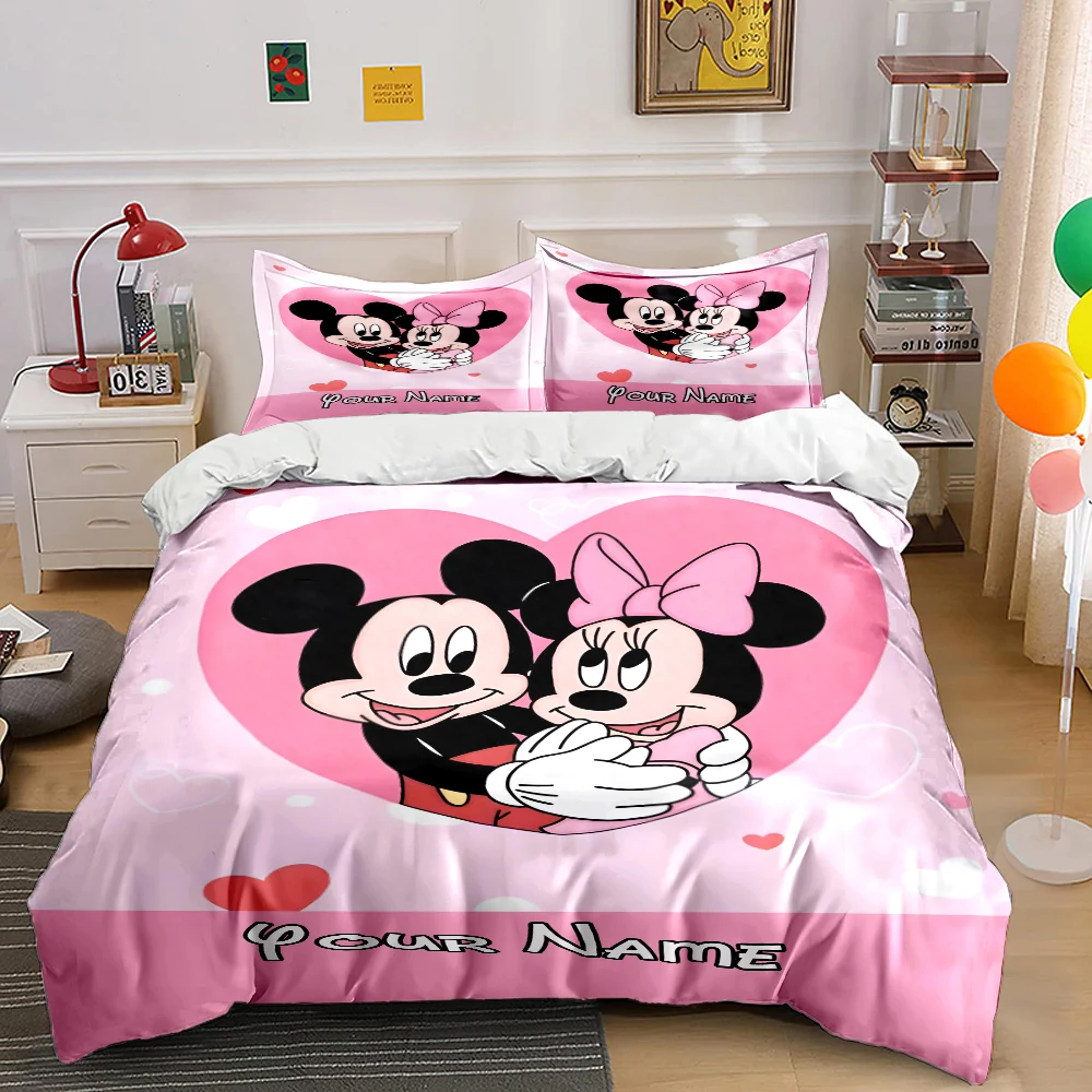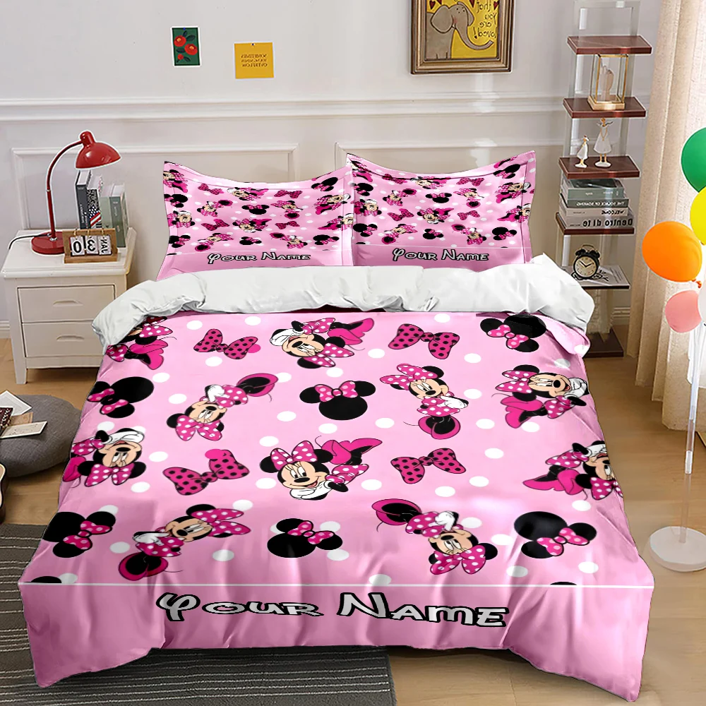 Ensemble de literie 3PCS personnalisé Minnie – Housse de couette et taies, imprimé dessin animé, confort luxe enfant/adulte