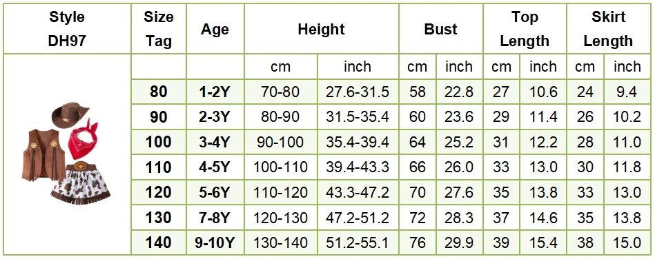 Emballage inclus: 1 * ensembles de jupe Cowboy