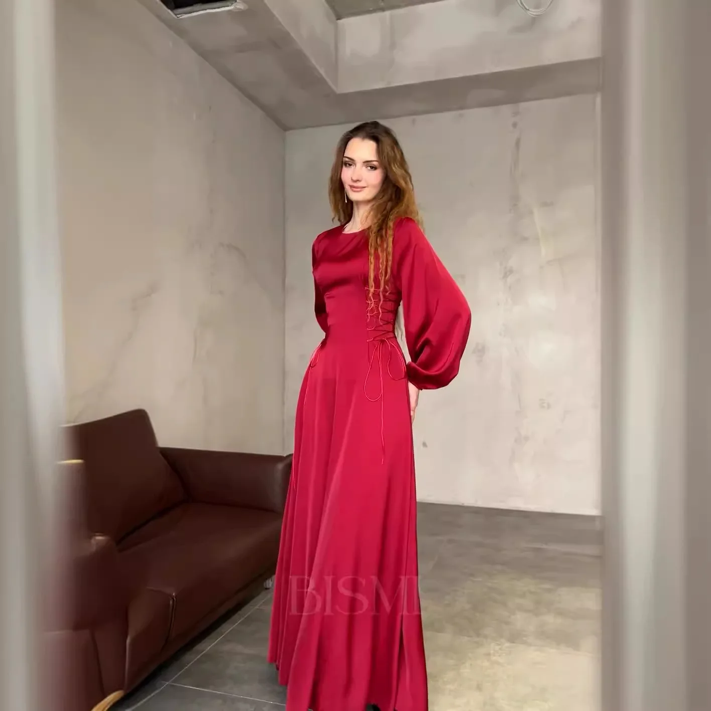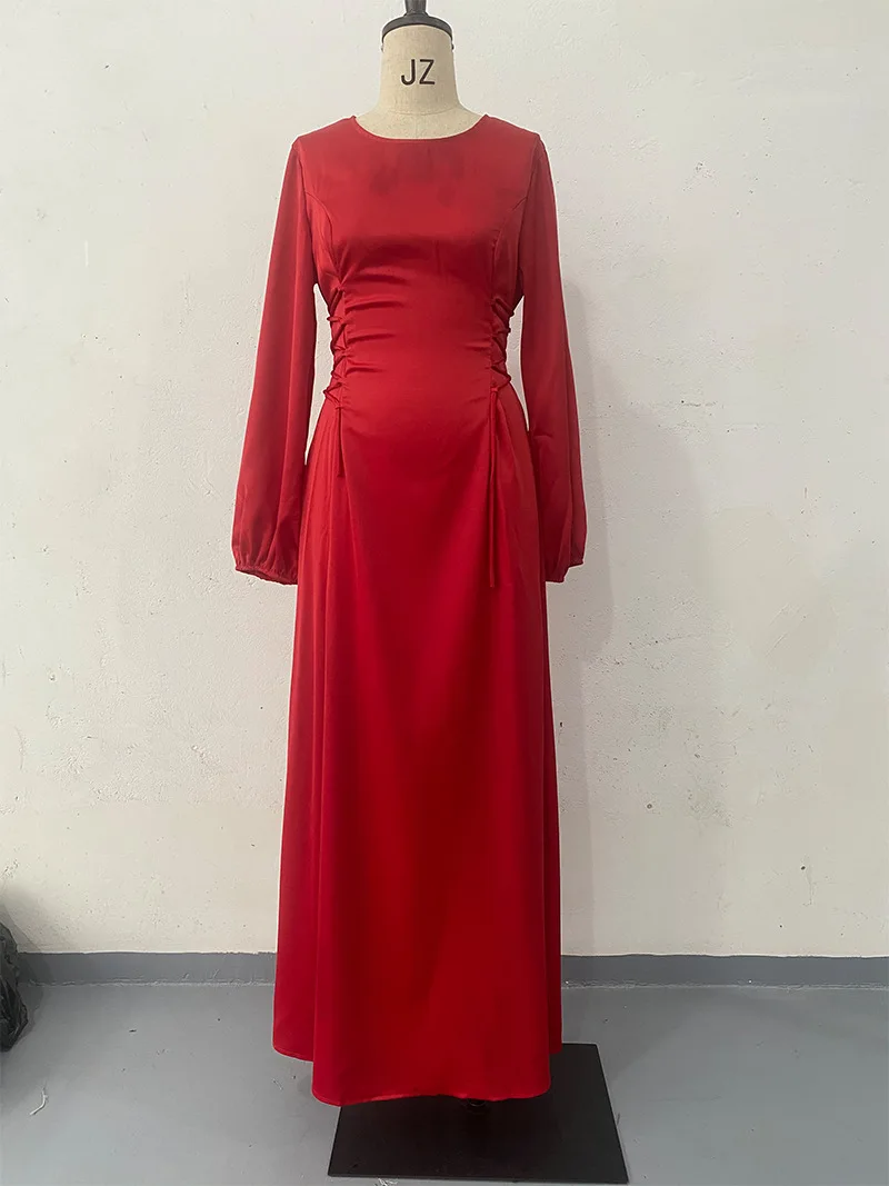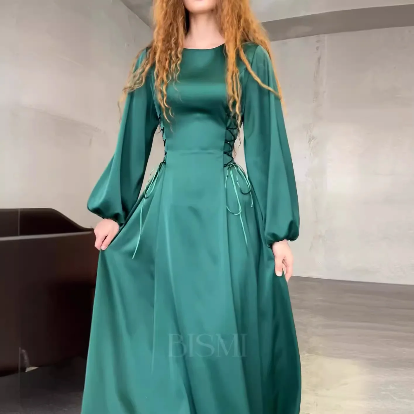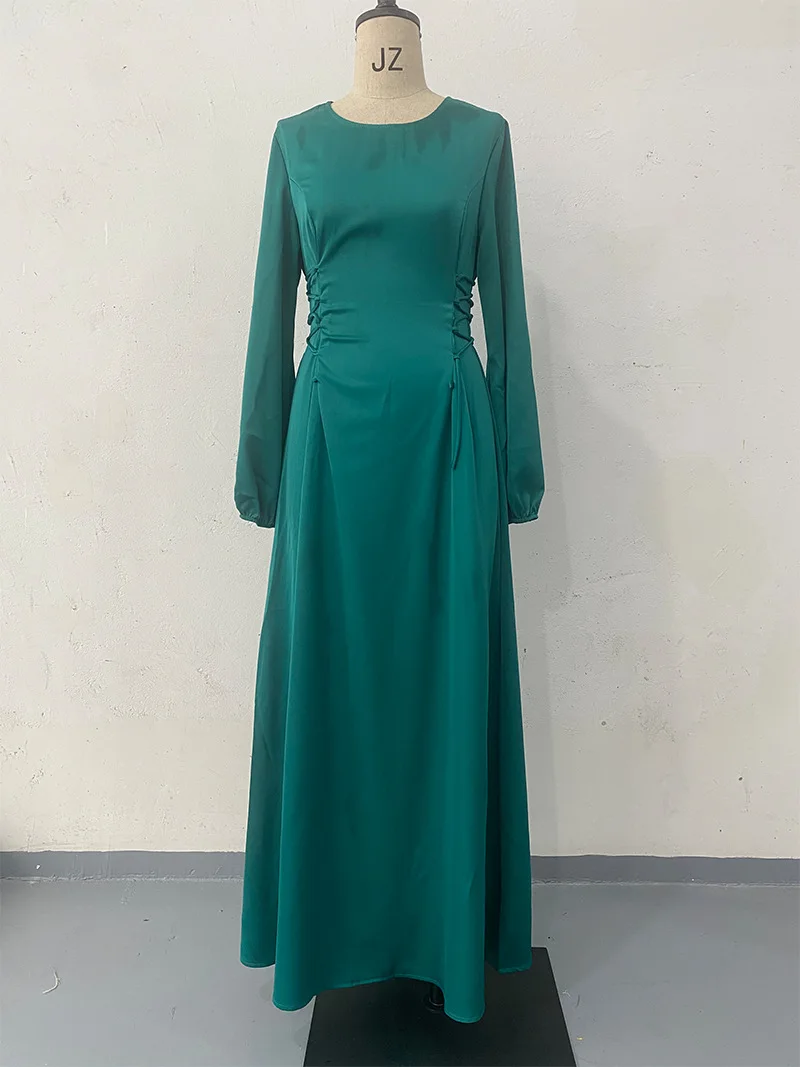 Abaya chic femme – Robe slim à lacets et col rond, style musulman, soirée