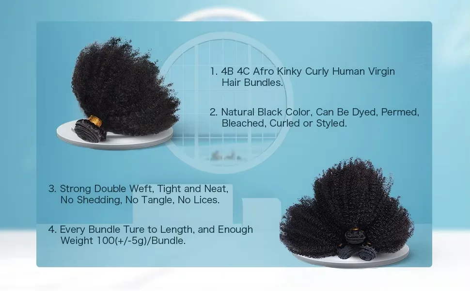 Extensions cheveux humains Remy Vietnam 4B 4C Afro crépus bouclés – Paquets en vrac, armure naturelle, 1/2/3 pièces, qualité premium