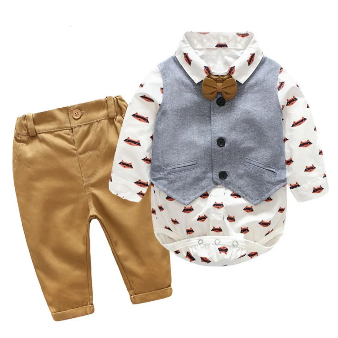 Un ensemble: Barboteuse + gilet + pantalon + nœud