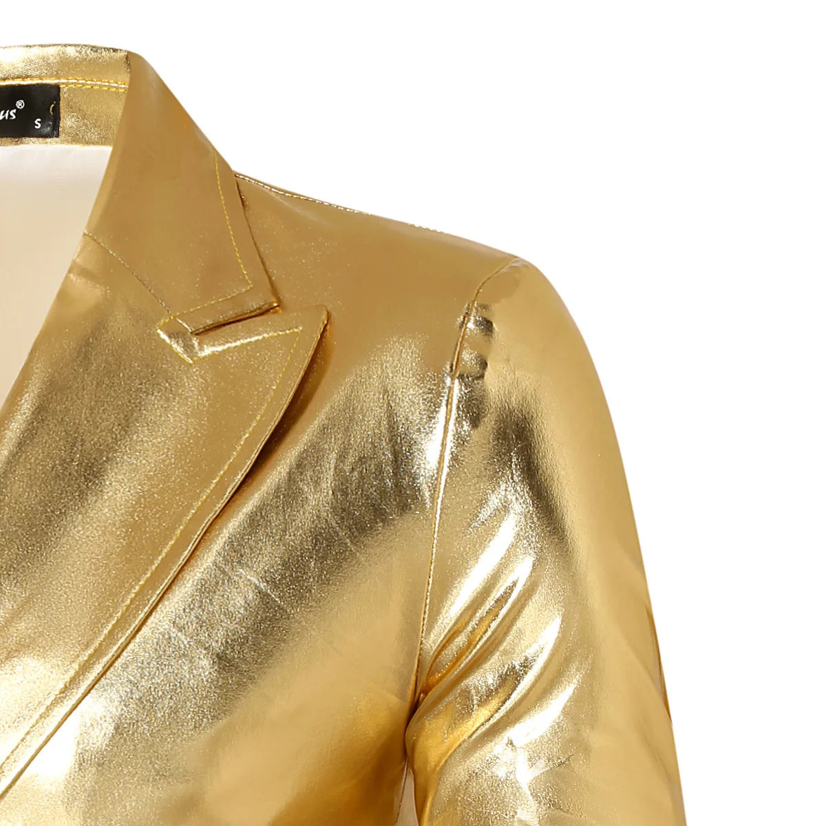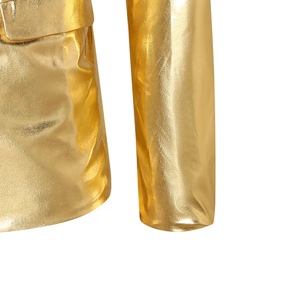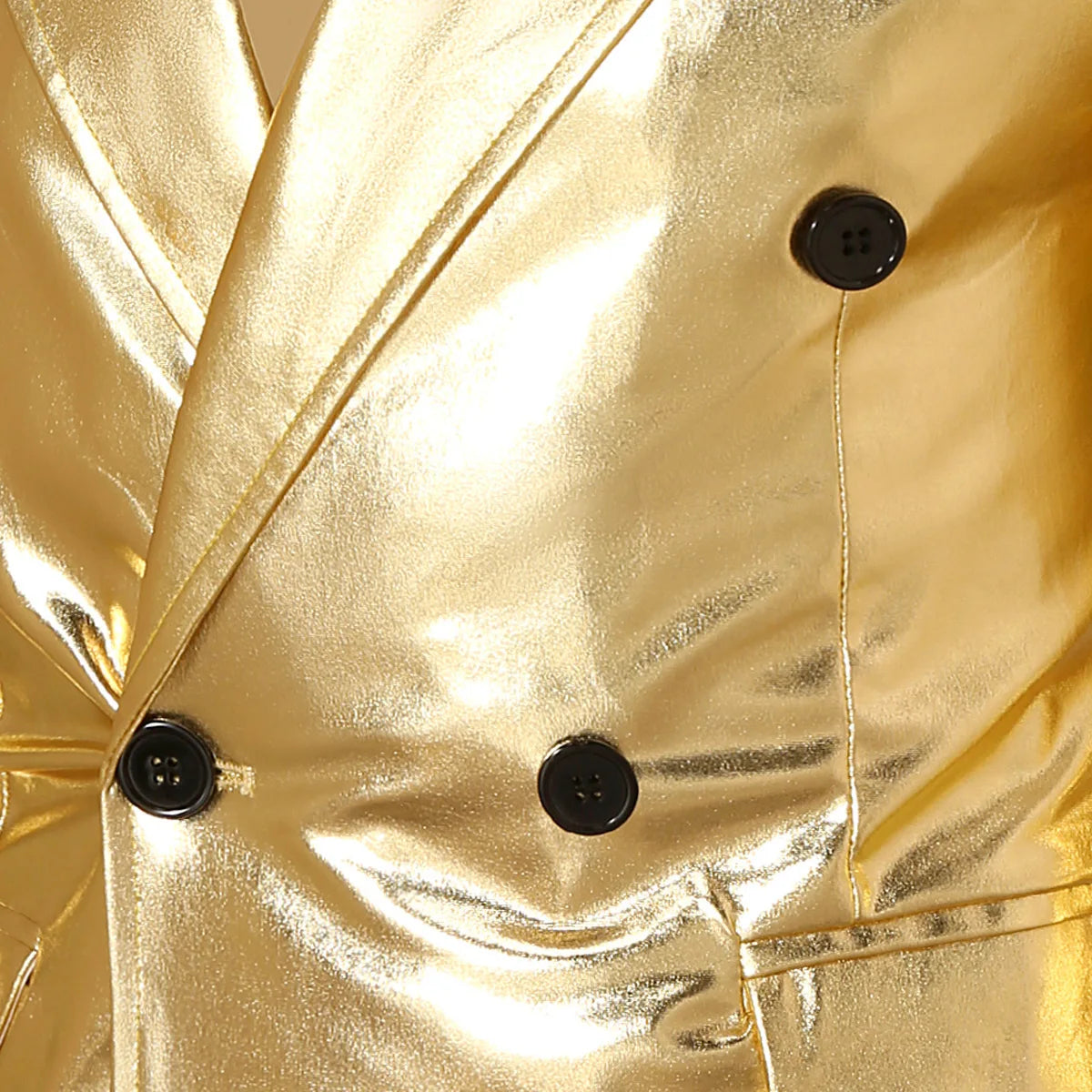 Blazer homme noir et argent à col V, paillettes dorées, manches longues – Fête & scène .