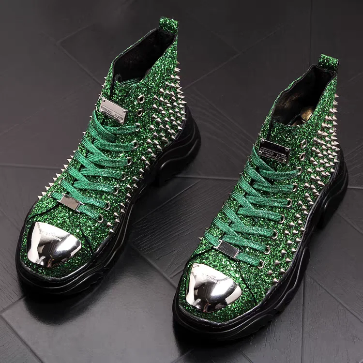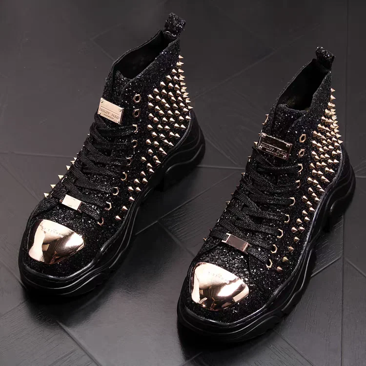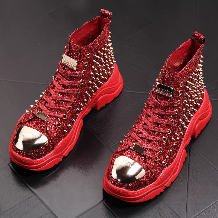 Bottes à rivets de luxe pour hommes – Baskets créateur punk or rouge