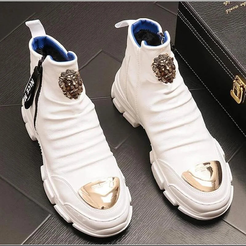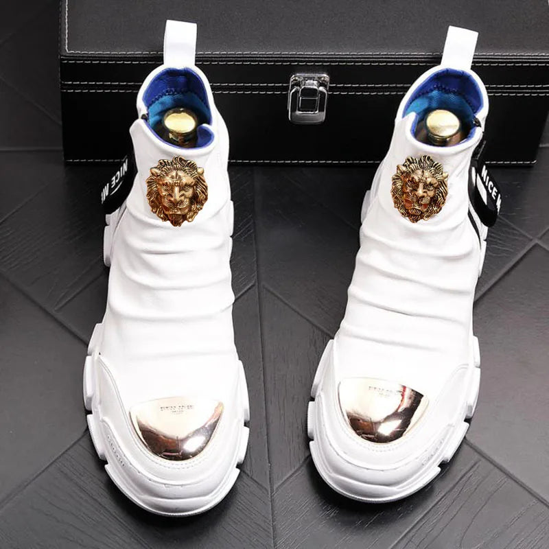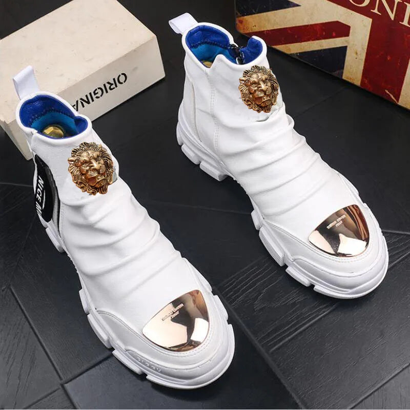 Bottes de moto hommes en cuir hautes – Style coréen décontracté A26