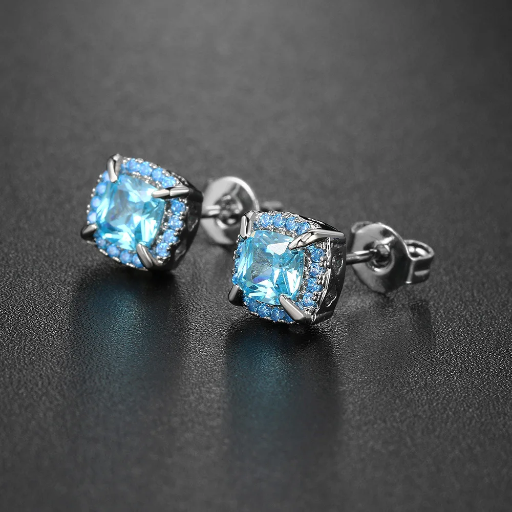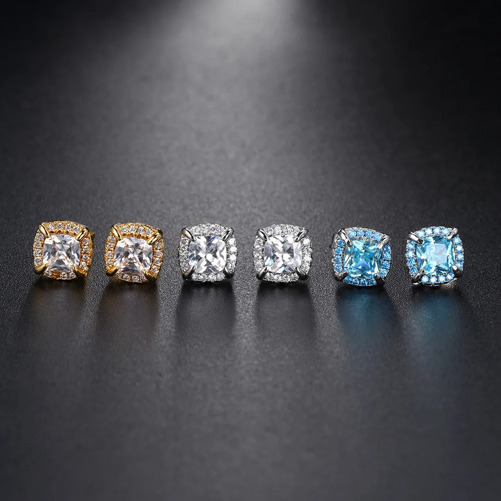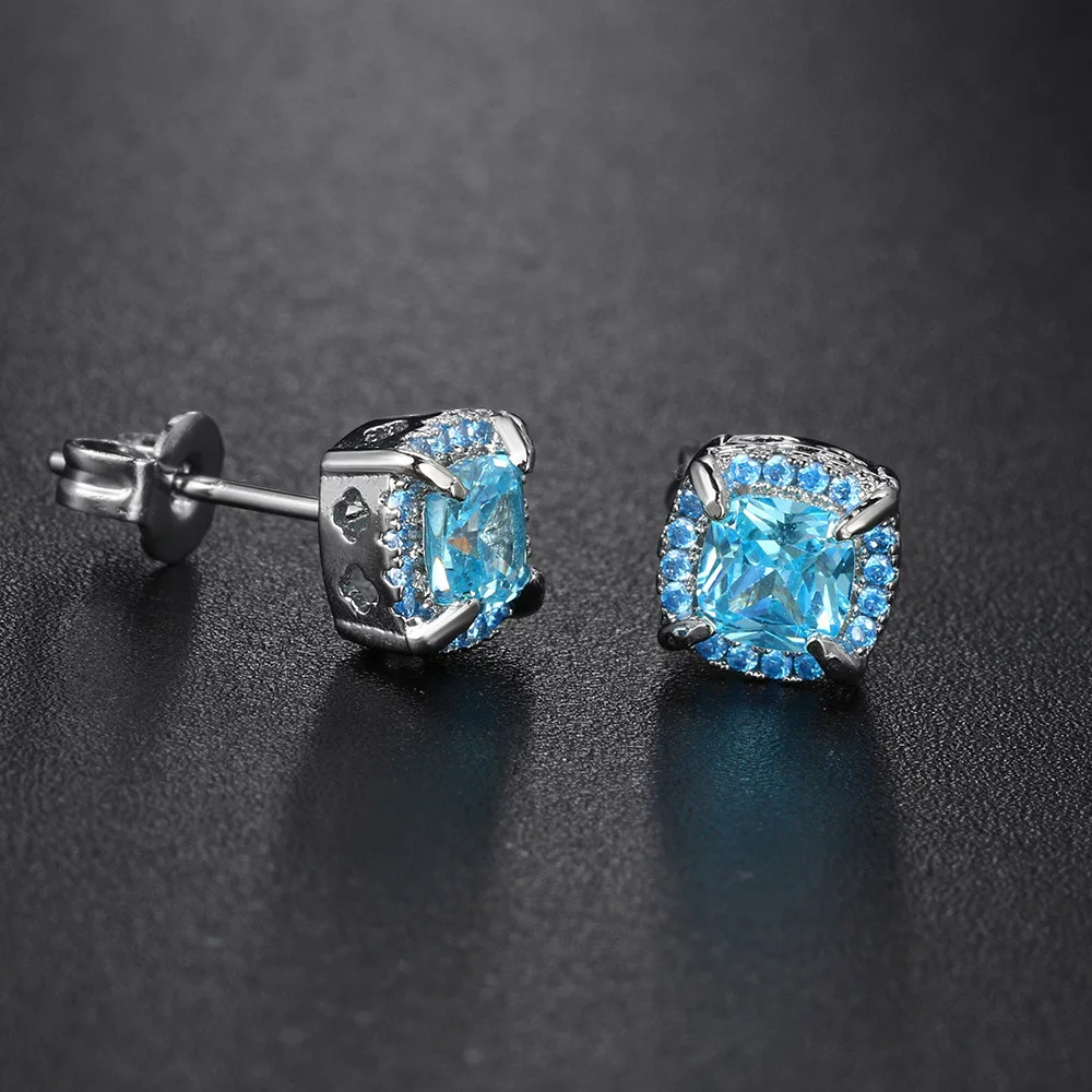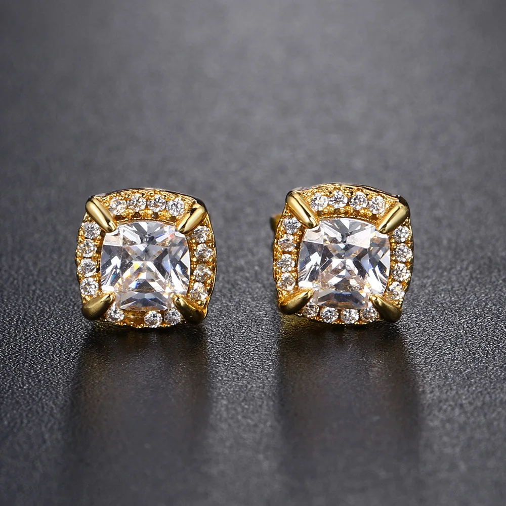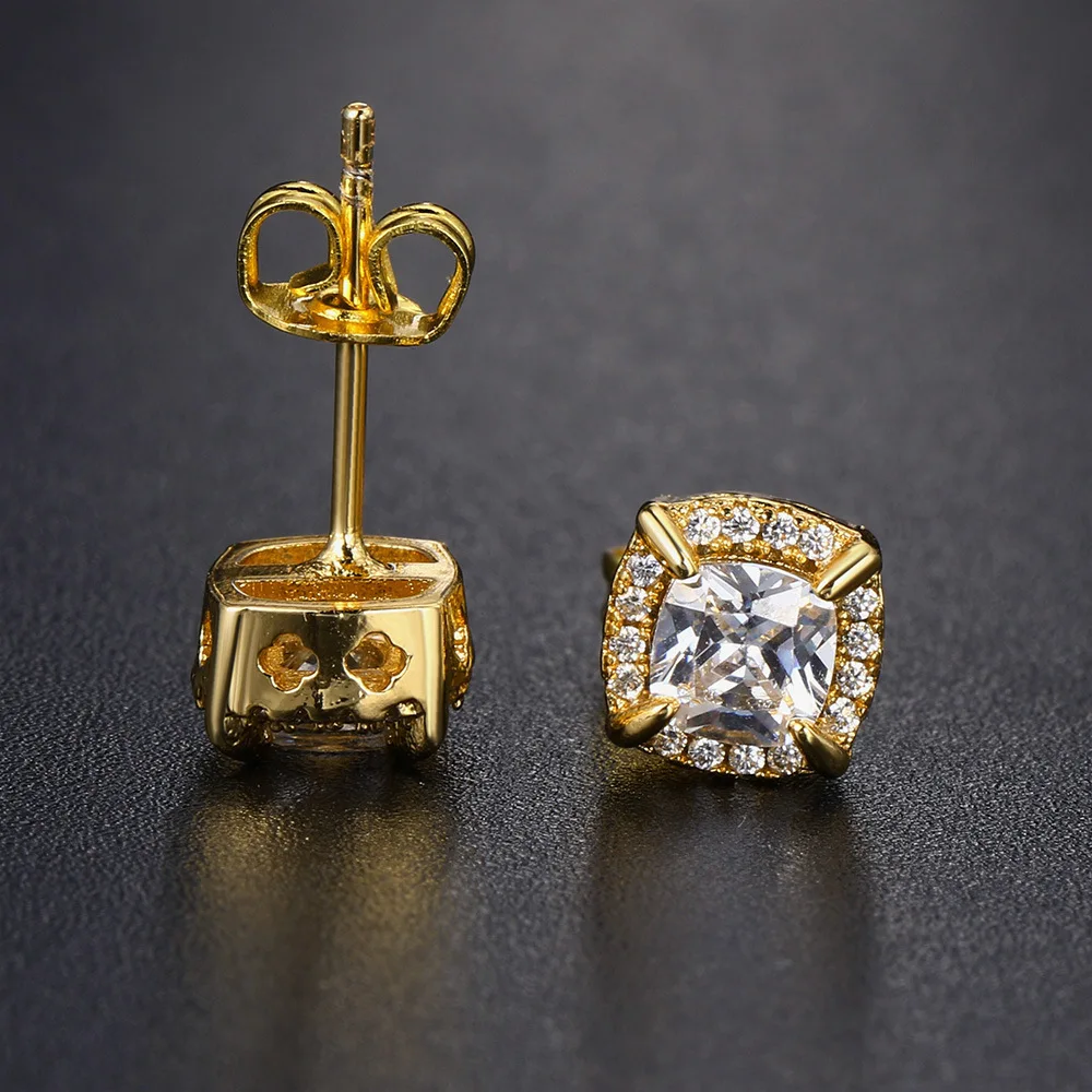 Boucles d’Oreilles Homme Hip-Hop Or – Cristal Bleu Glacé, Bijoux Luxe Tendance YIKOOLIN