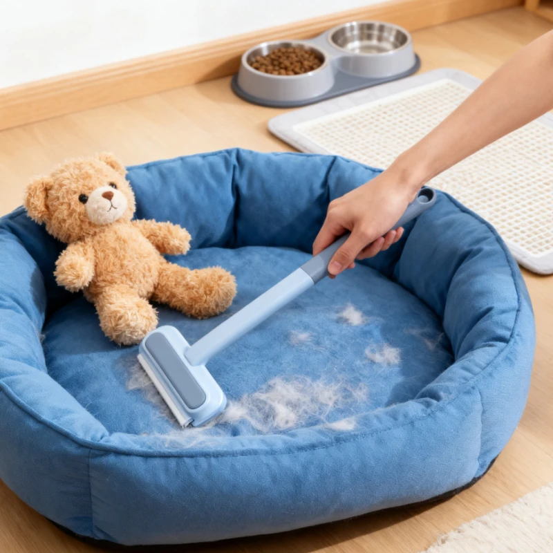 1.Brosse d'épilation pour animaux de compagnie à long manche, nettoyage efficace, simple et pratique