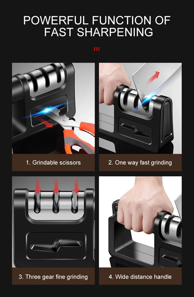 Affûteur manuel professionnel 3 étapes – carbure de tungstène & diamant, style japonais, couteaux/ciseaux de cuisine