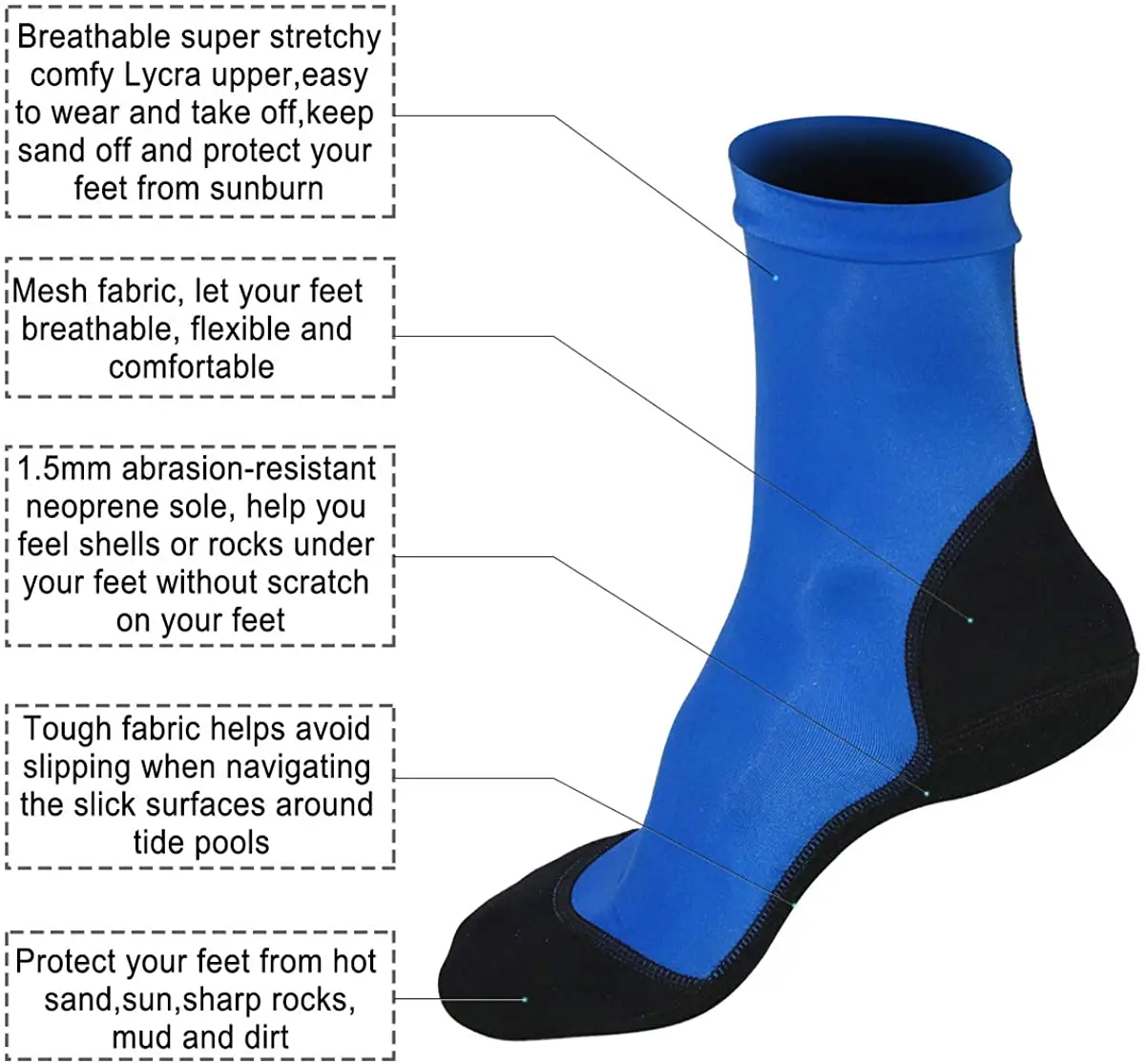 Ces chaussettes de sports nautiques sont conçues pour la navigation de plaisance, la pêche, la plongée en apnée, la mise en commun de marée, les sports nautiques et les sports de plage.