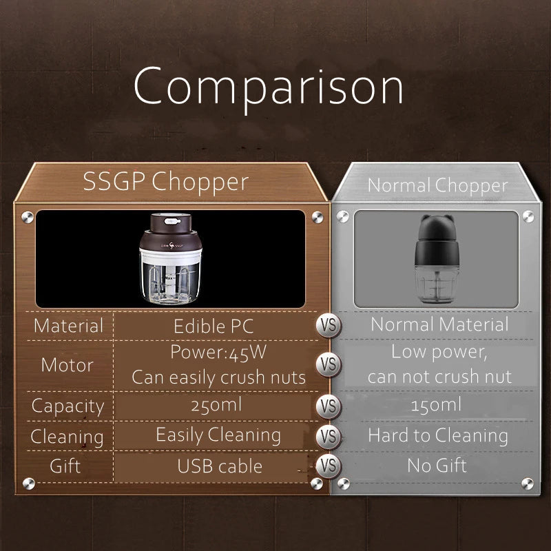 Broyeur légumes et fruits rechargeable luxe, presse-ail avec lame acier inox 430, conteneur PP certifié LFGB
