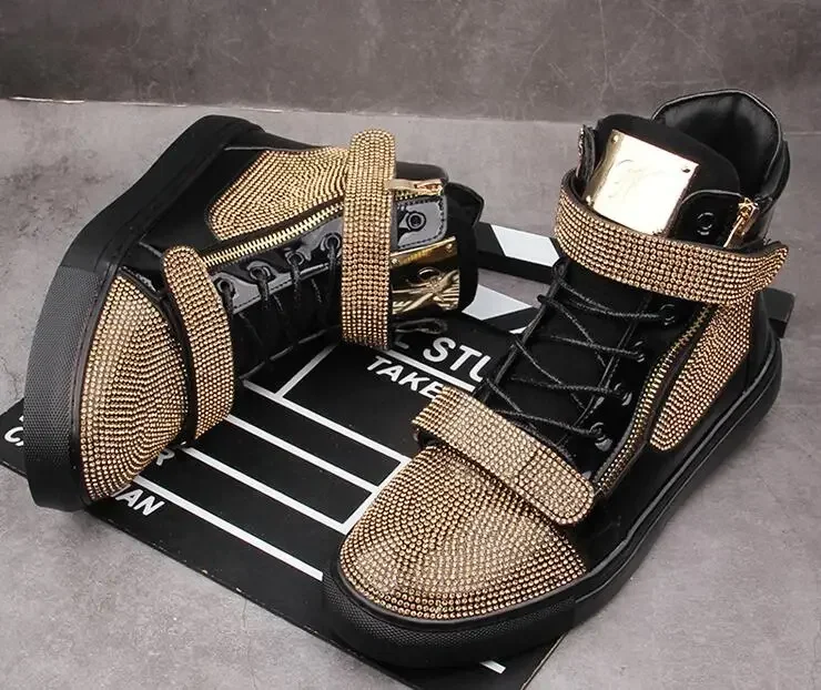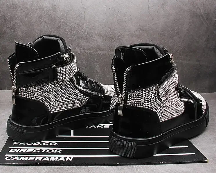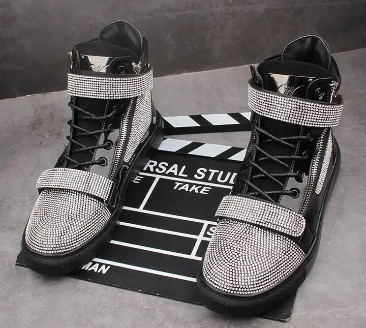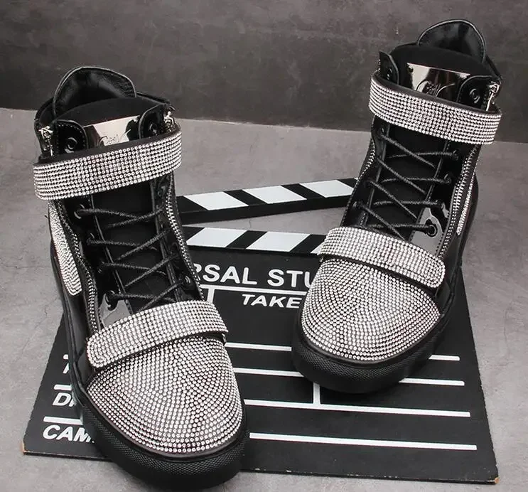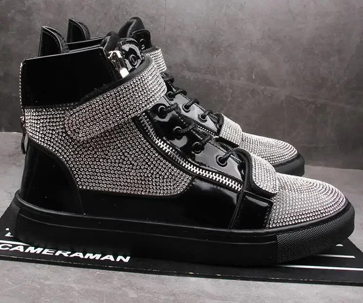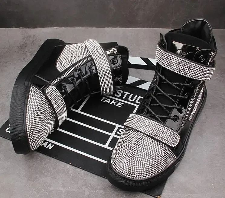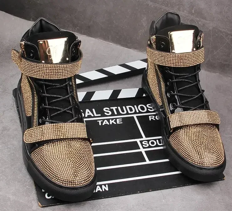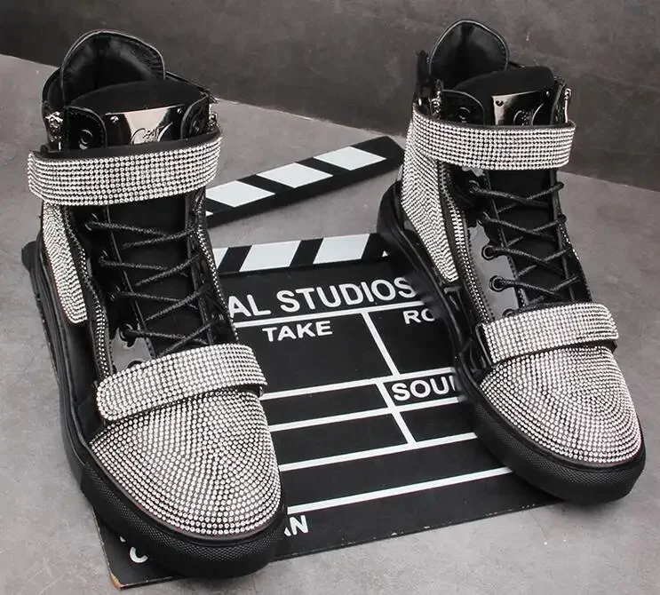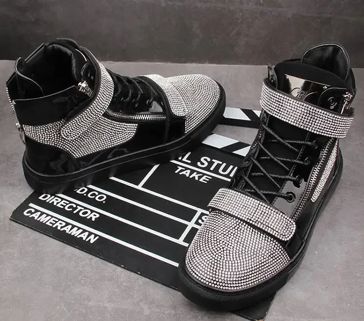 Chaussures plates homme à paillettes et strass – Style skateboard tendance