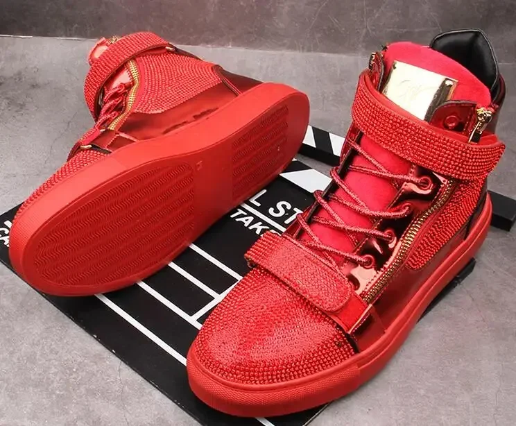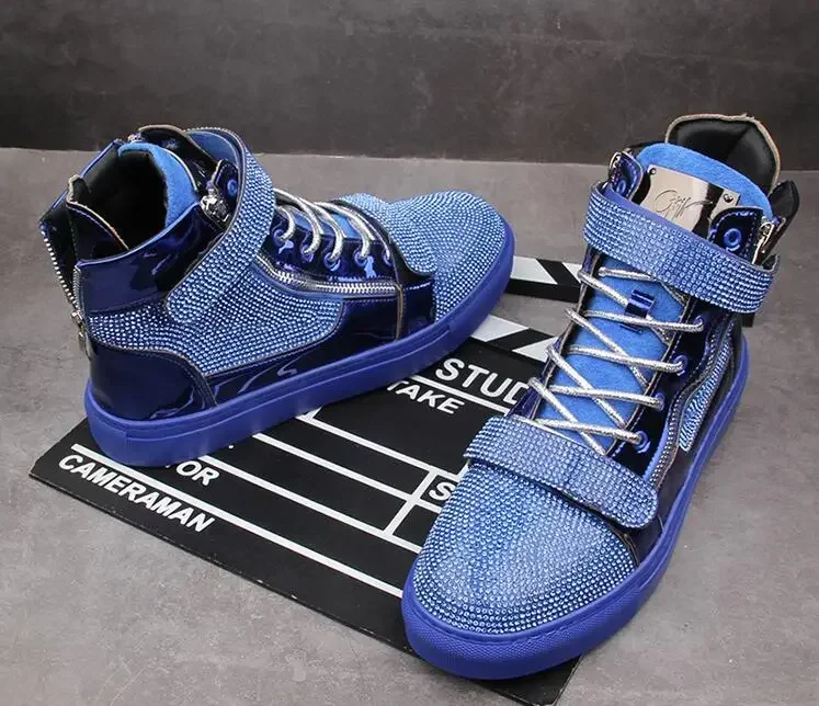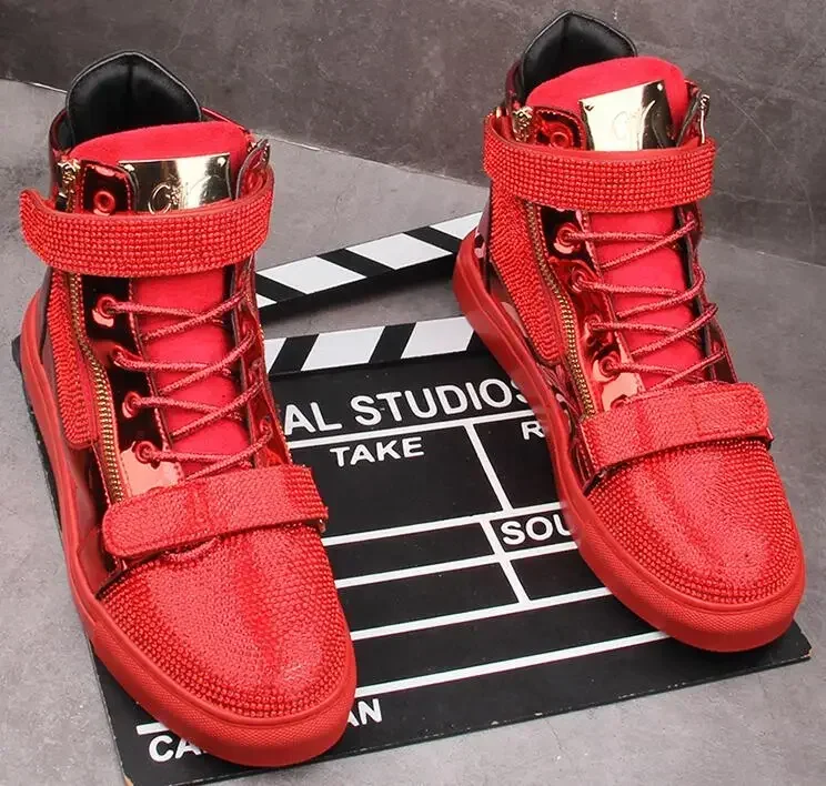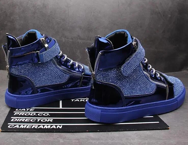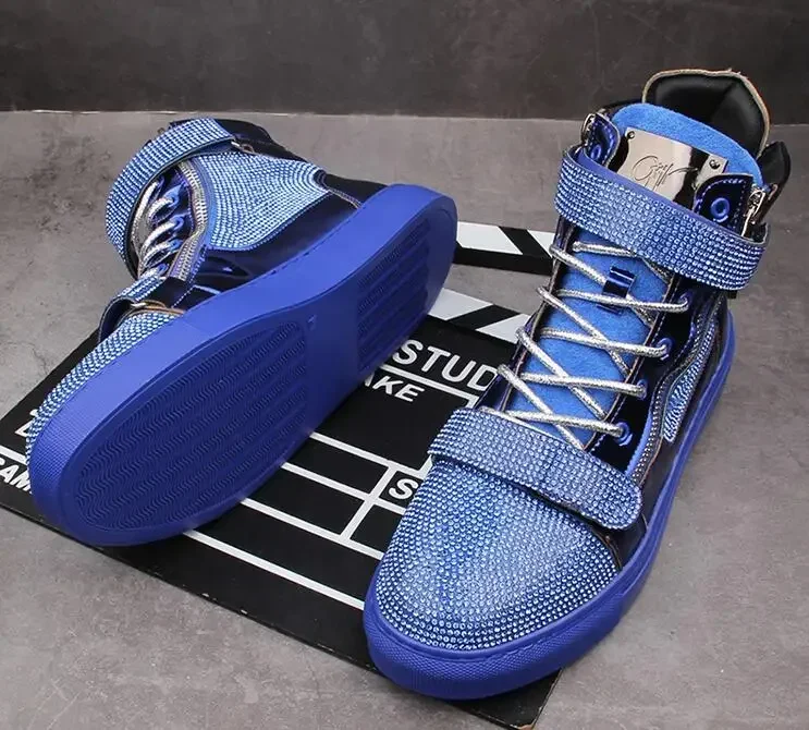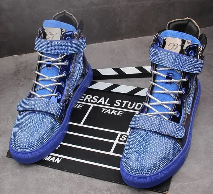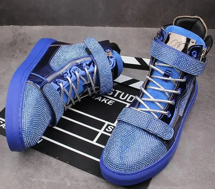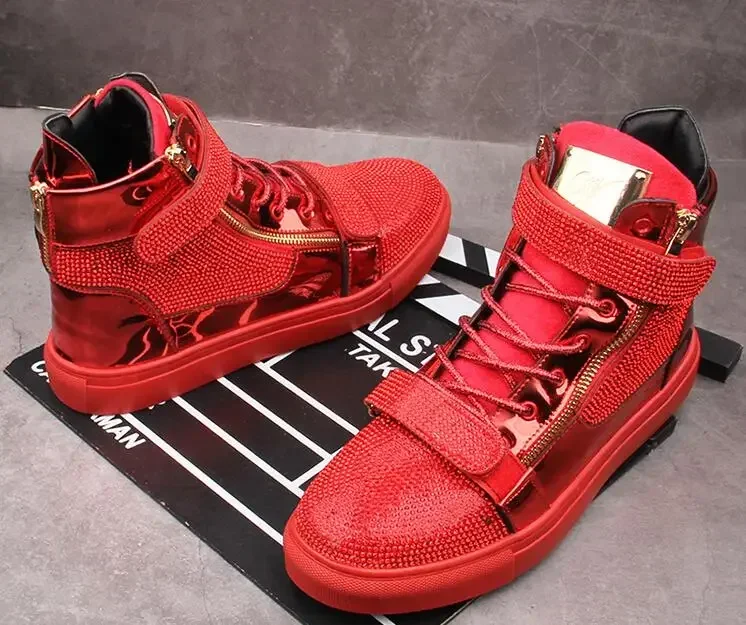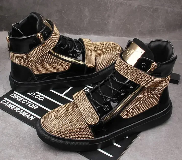 Chaussures plates homme à paillettes et strass – Style skateboard tendance