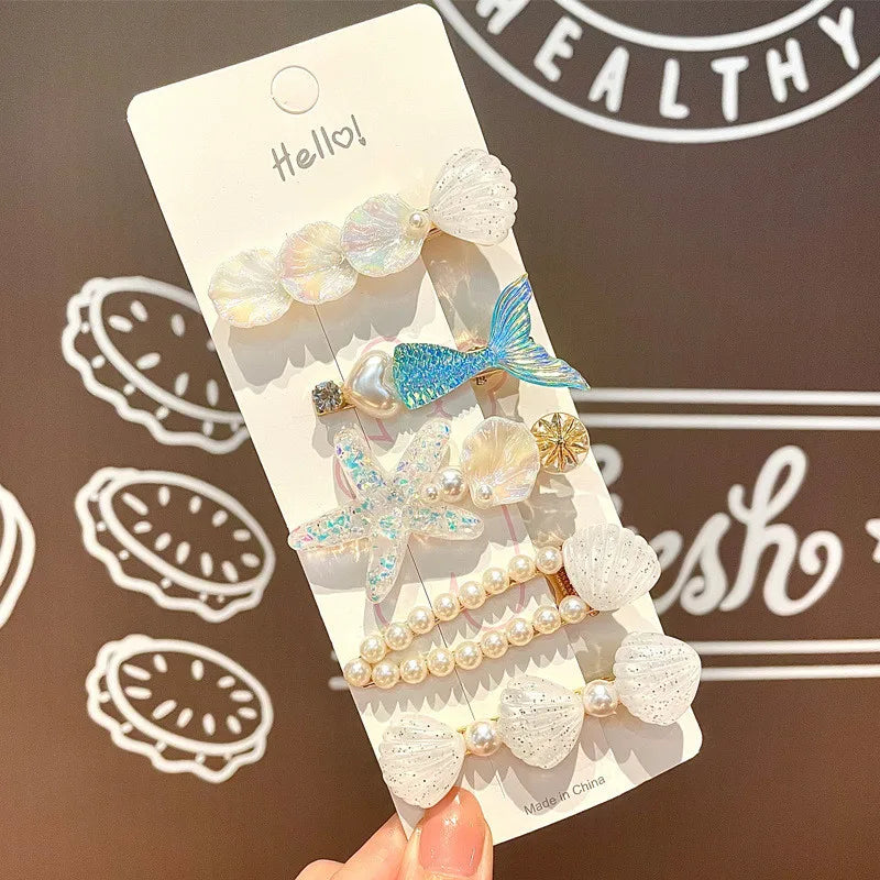 Pinces à Cheveux Bébé Fille – Ensemble 5 Pièces Sirène et Coquillage, Accessoires Mignons