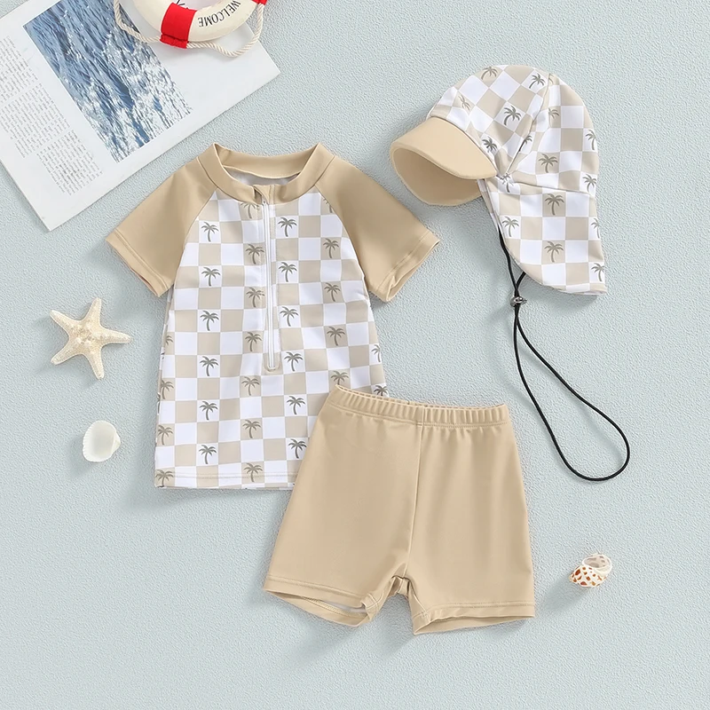Ensemble maillot de bain été bébé garçon – anti‑UV, haut manches courtes, short et chapeau
