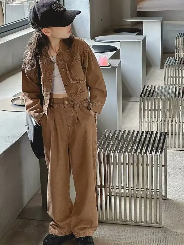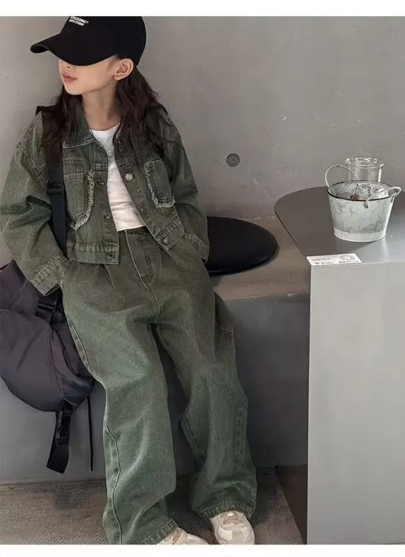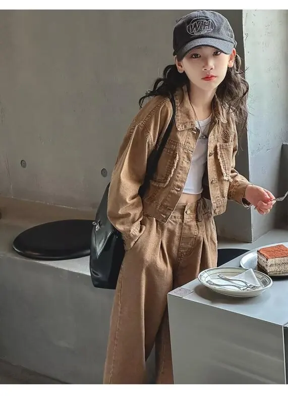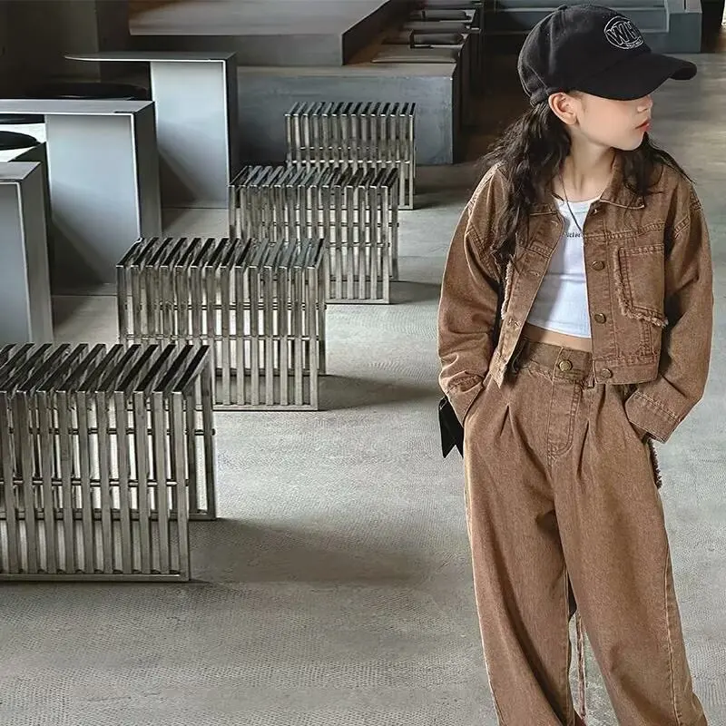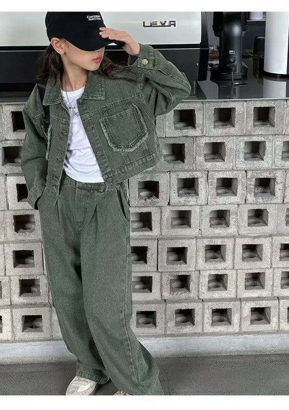 Ensemble de tenues 2 pièces pour filles, veste en jean à la mode, vêtements d'école pour mère et fille, tenues pour adolescents de 12 à 13 ans.