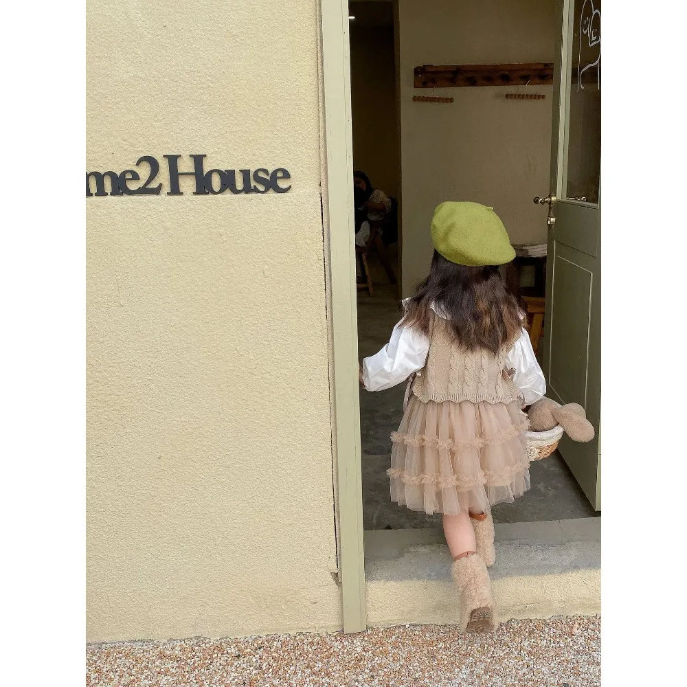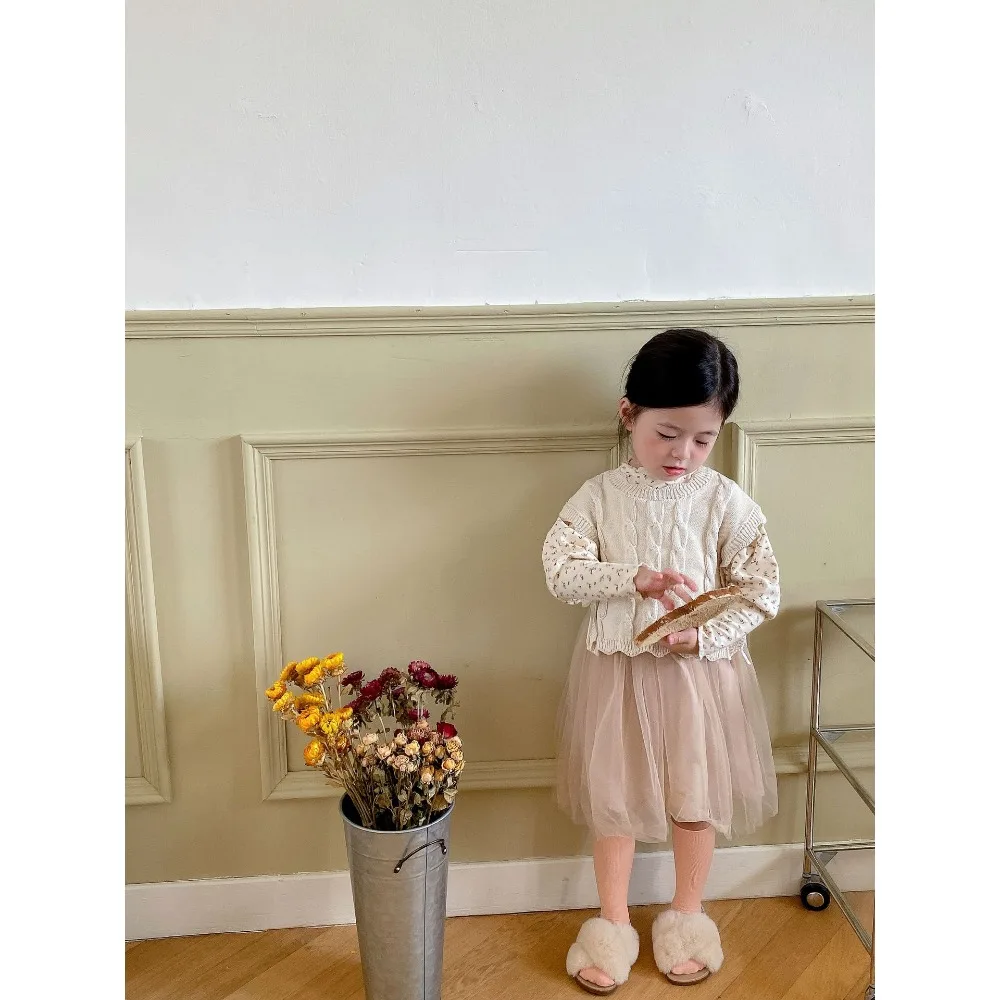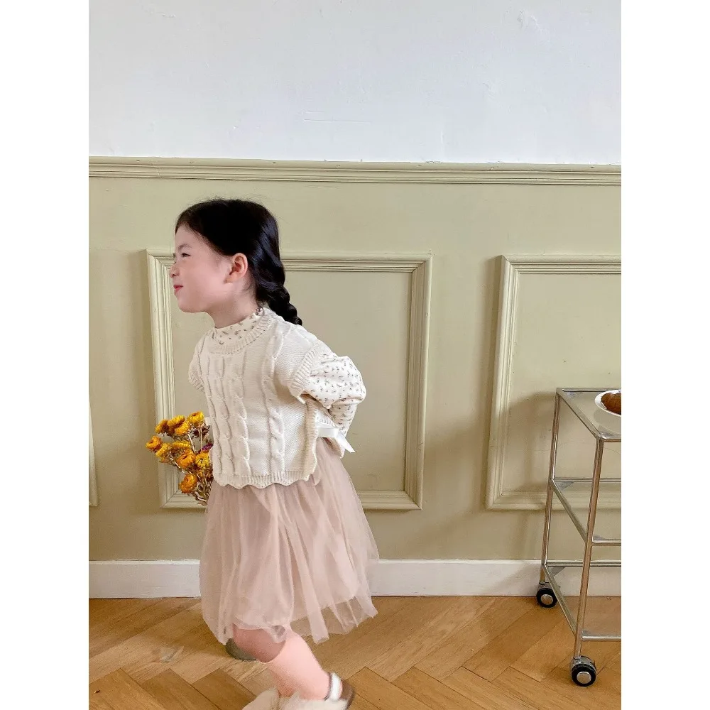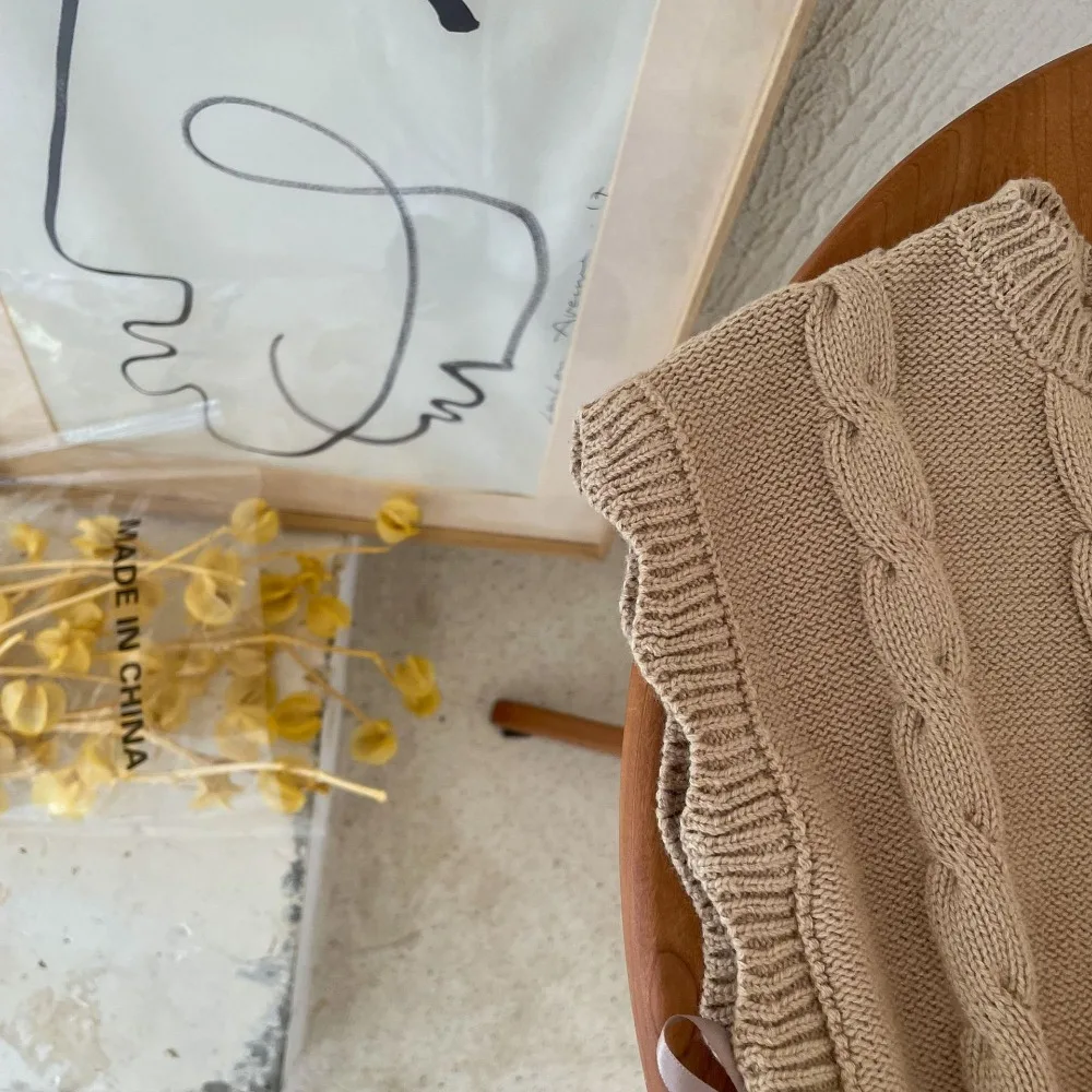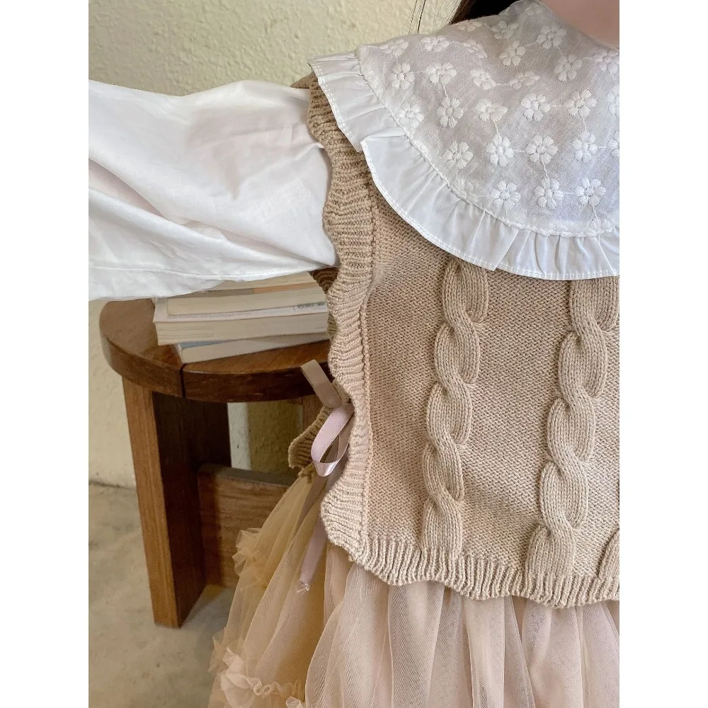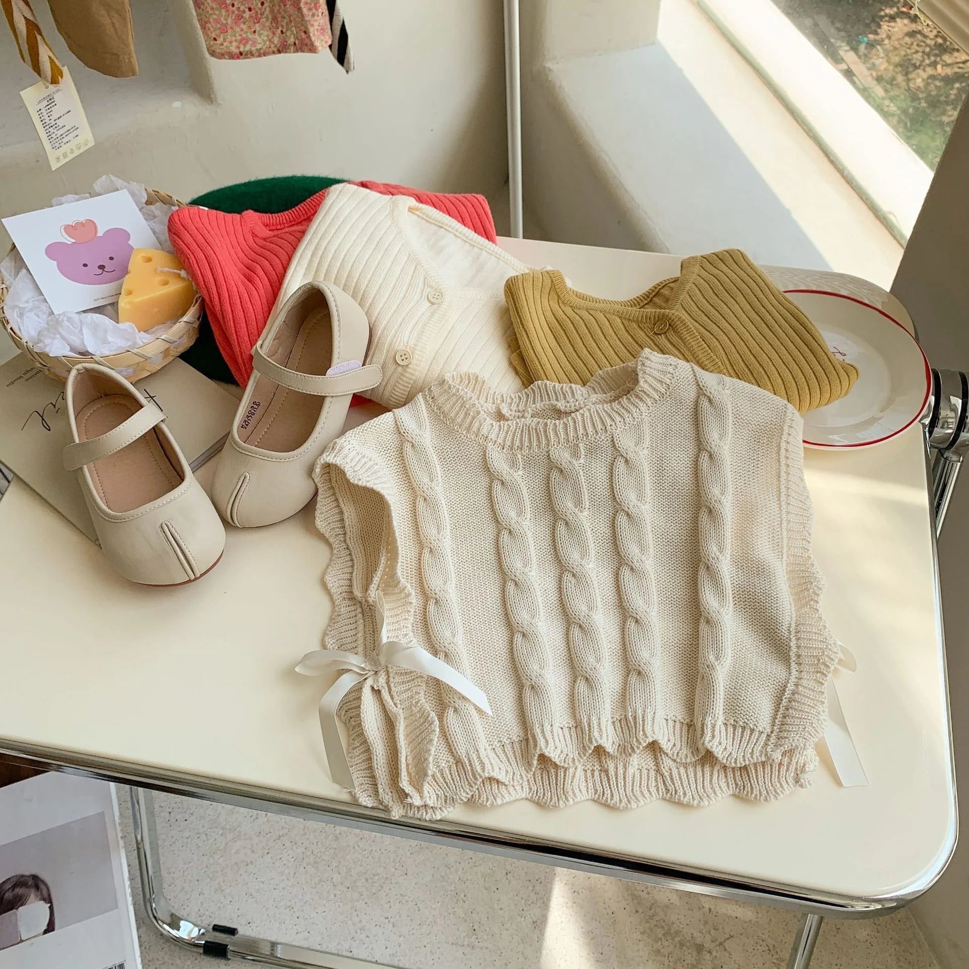 Gilet tricoté fille – sans manches, mode printemps/automne, 1‑7 ans