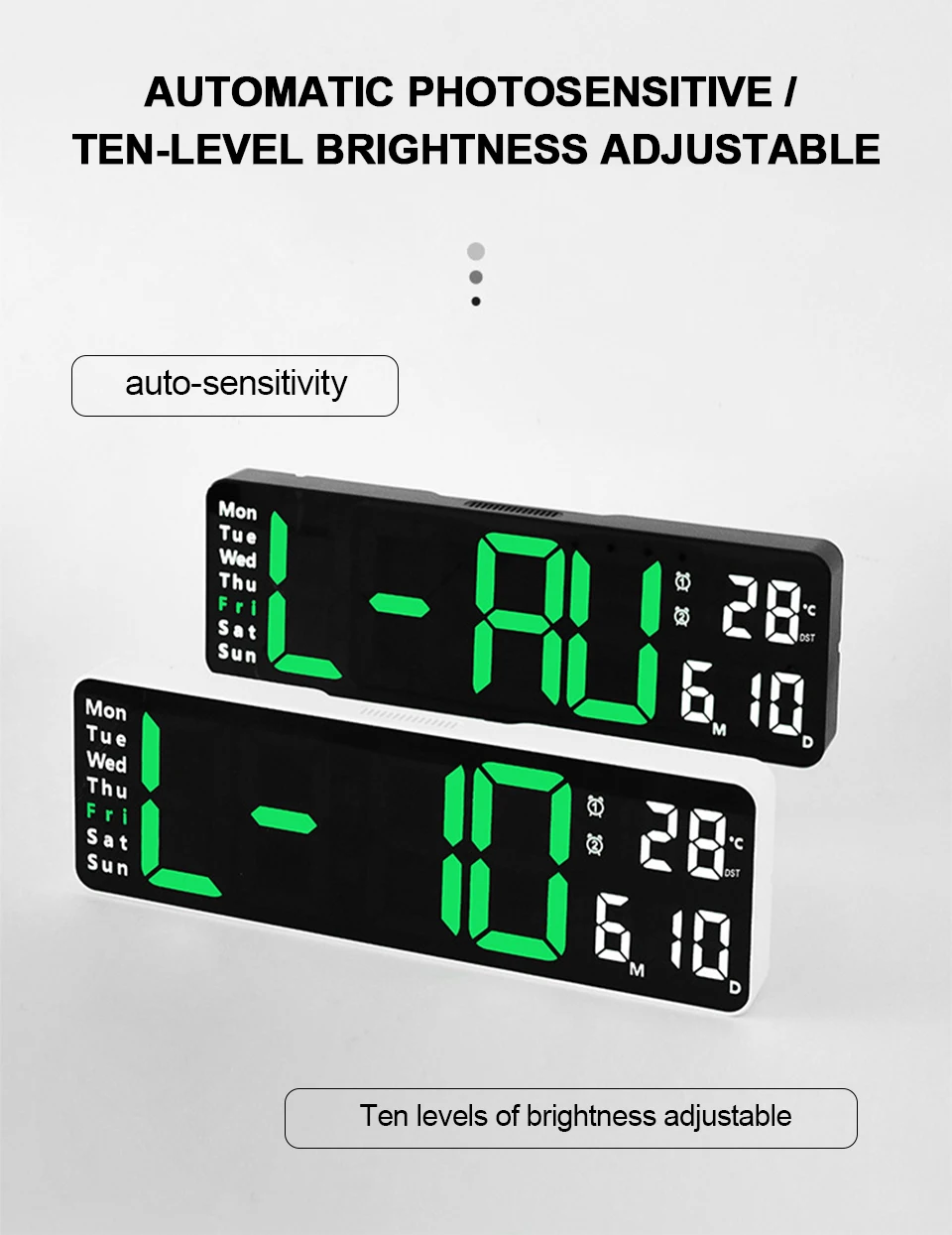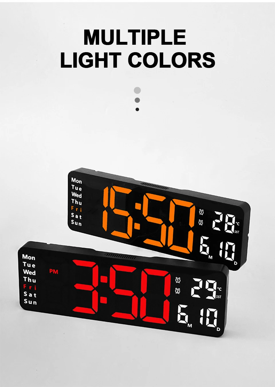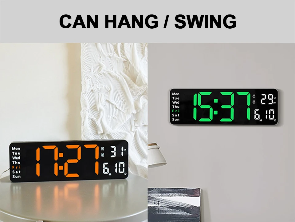 2. Équipé d'une télécommande, qui peut contrôler à distance l'horloge électronique LED.Conception bicolore, distingue différentes zones, plus intuitive pour voir l'heure