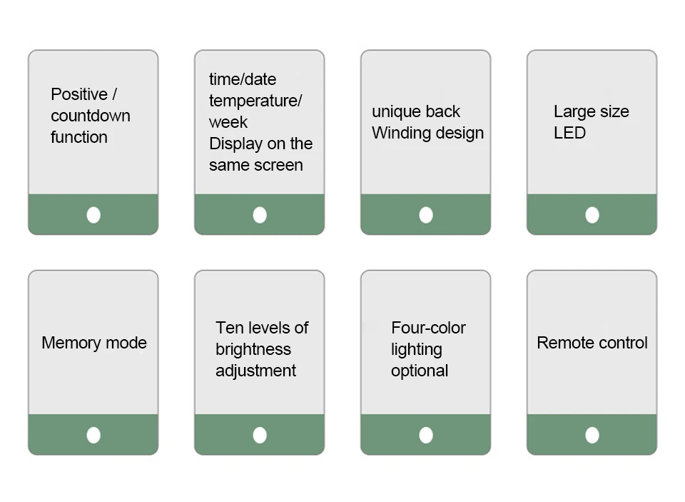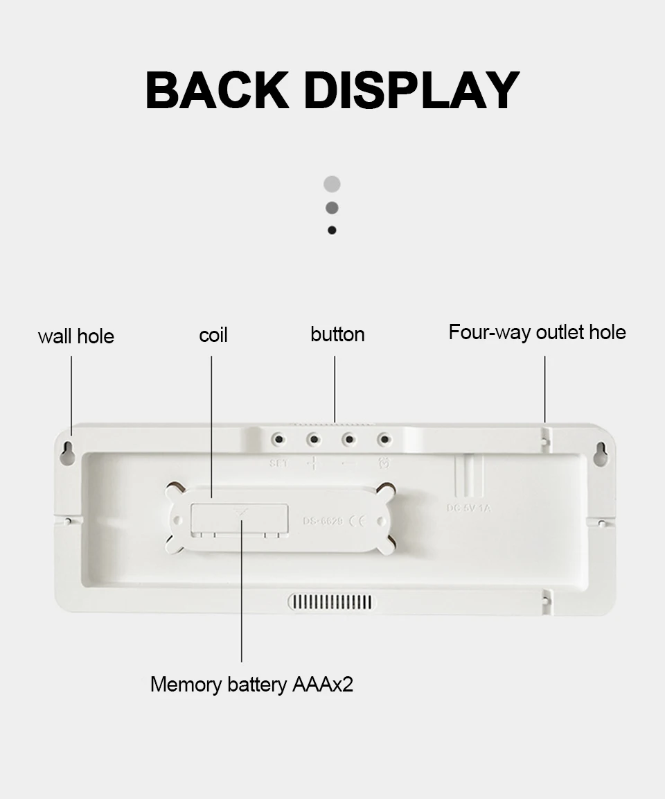 4. Fonction de mémoire de mise hors tension, affichage de grands chiffres arabes, facile à lire.Conception du trou de suspension arrière: sûr et stable, pas facile à tomber