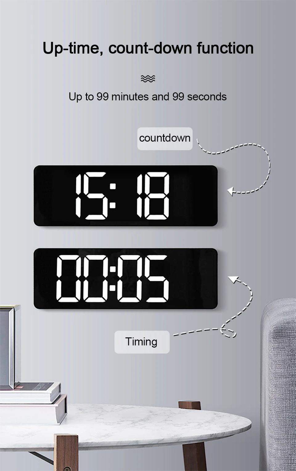 6. Fonction minuterie/compte à rebours unique.Le plus long est de 99 minutes et 99 secondes.