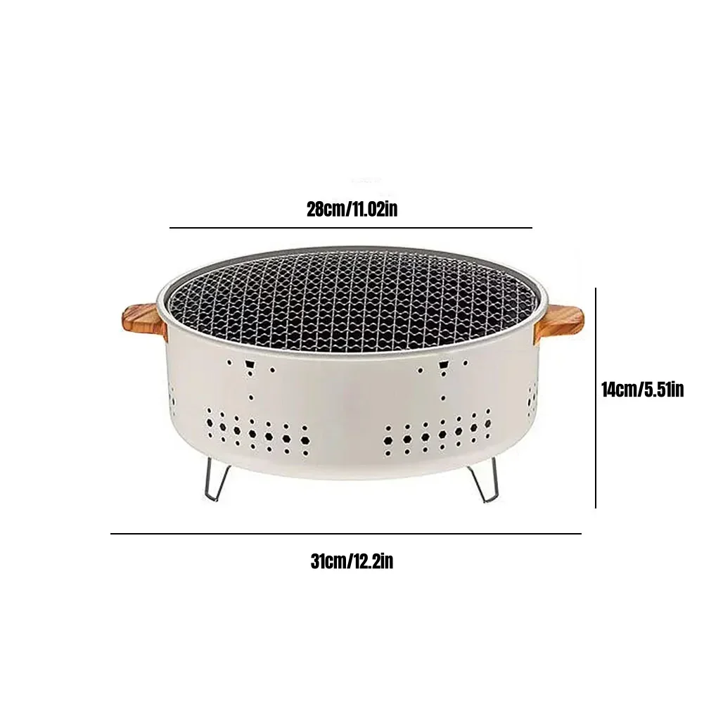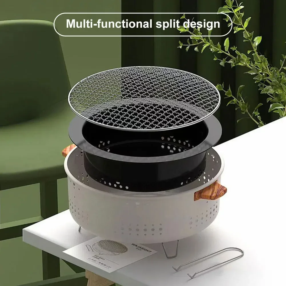 1. Grill portable multifonctionnel :Découvrez la polyvalence de ce réchaud de barbecue rond, conçu pour la cuisine en plein air, la préparation du thé et le barbecue portable.