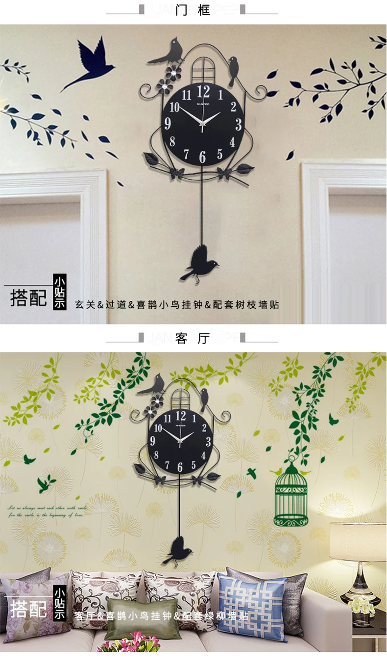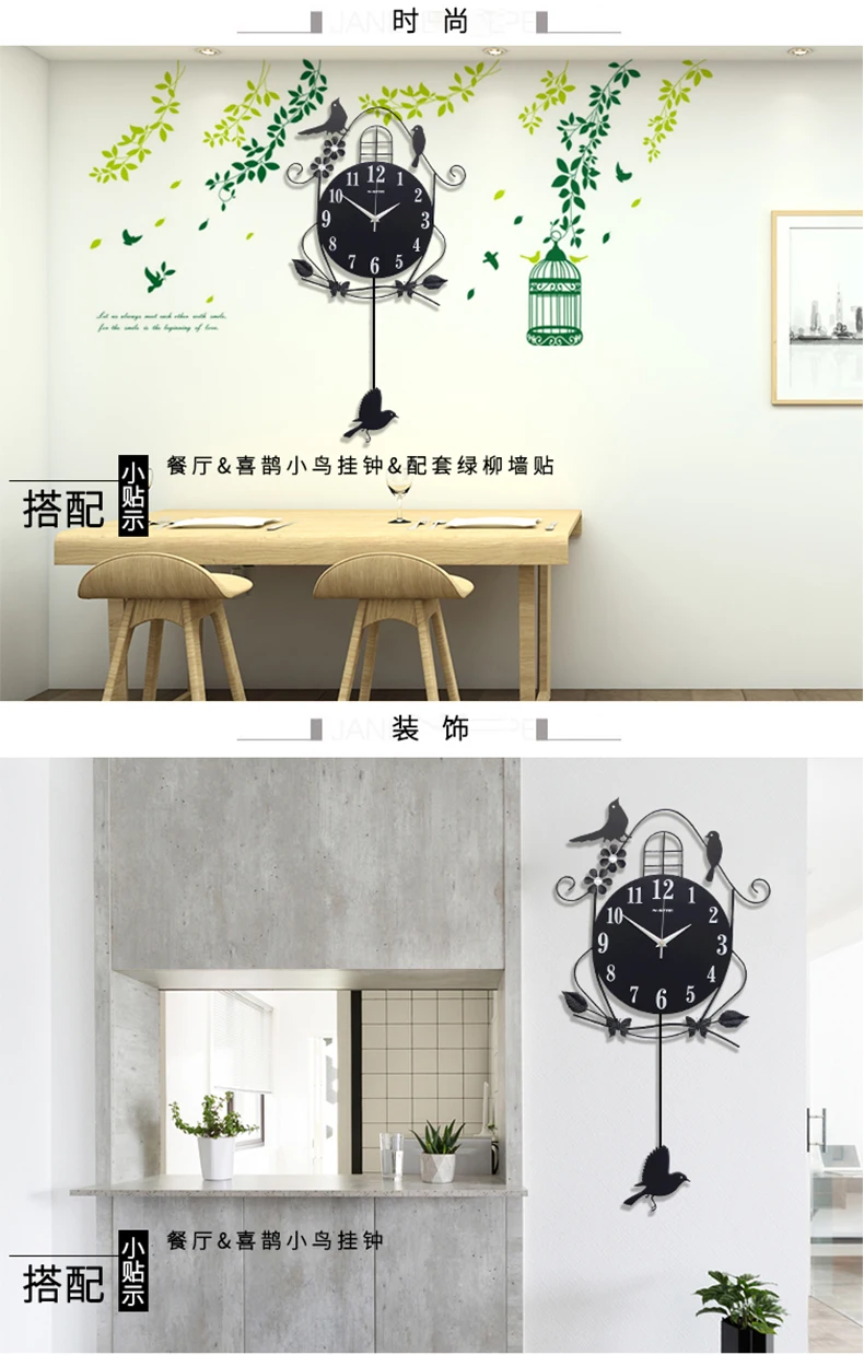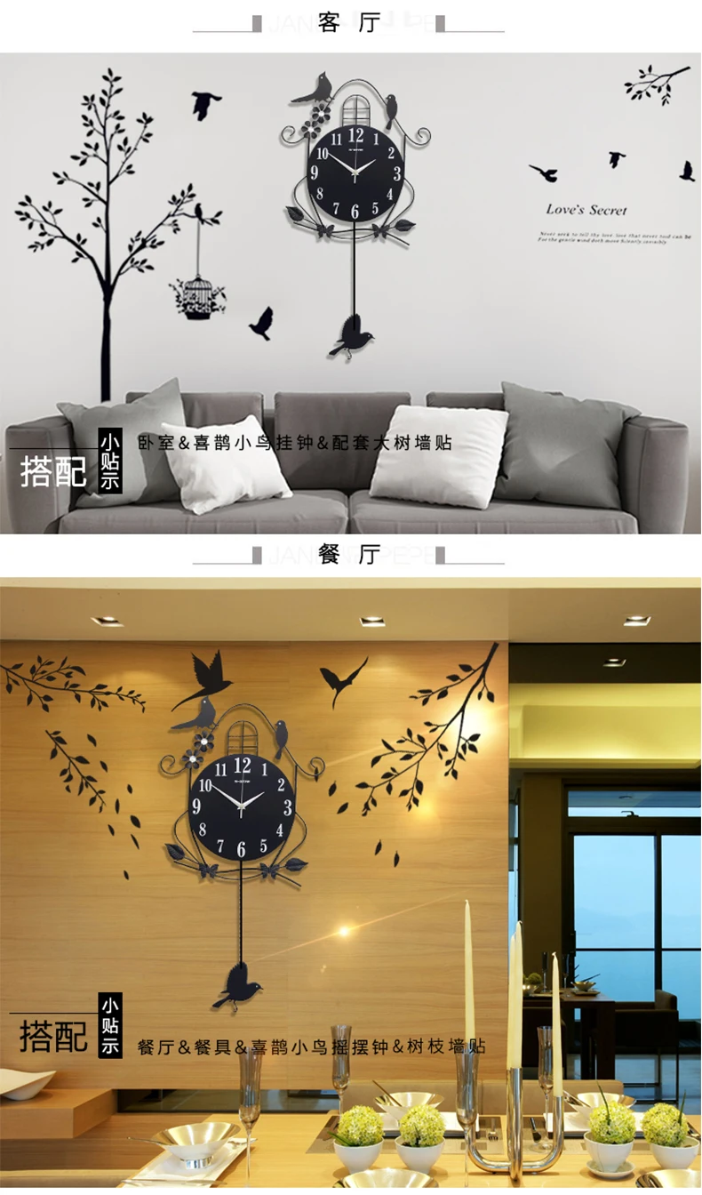Horloge murale fer noir oiseau– grande, électronique, durable, design moderne, arts et artisanat