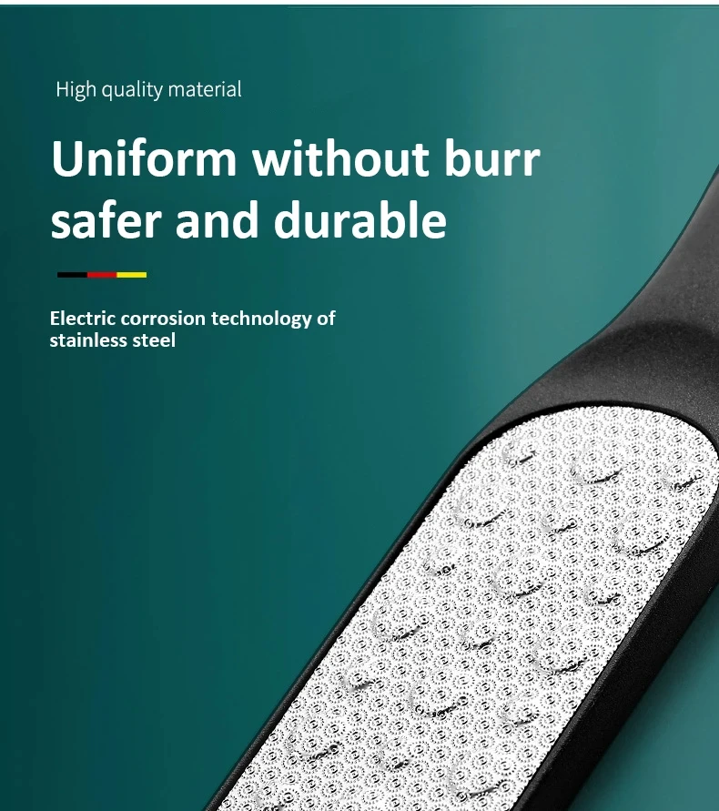 Lime à pieds en acier inoxydable 304 de haute qualité – Dissolvant de callosités double face pour la pédicure professionnelle, l'hygiène à domicile et en salon.