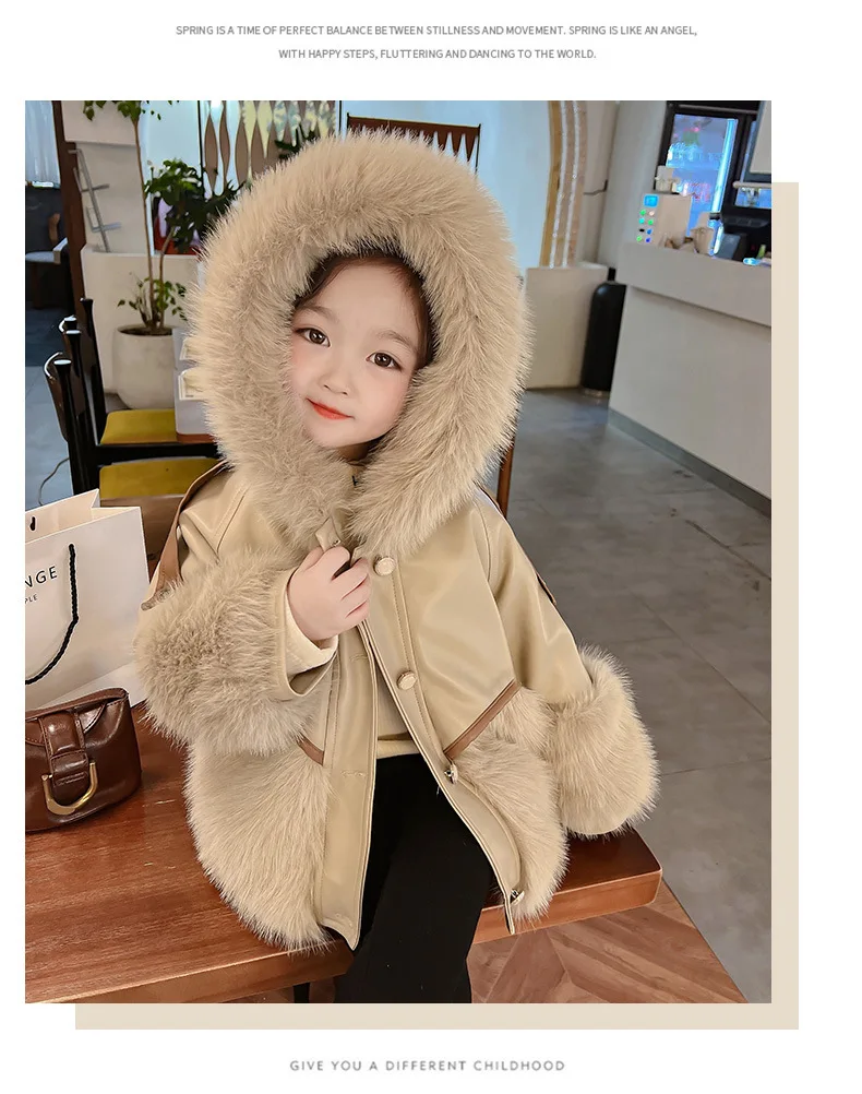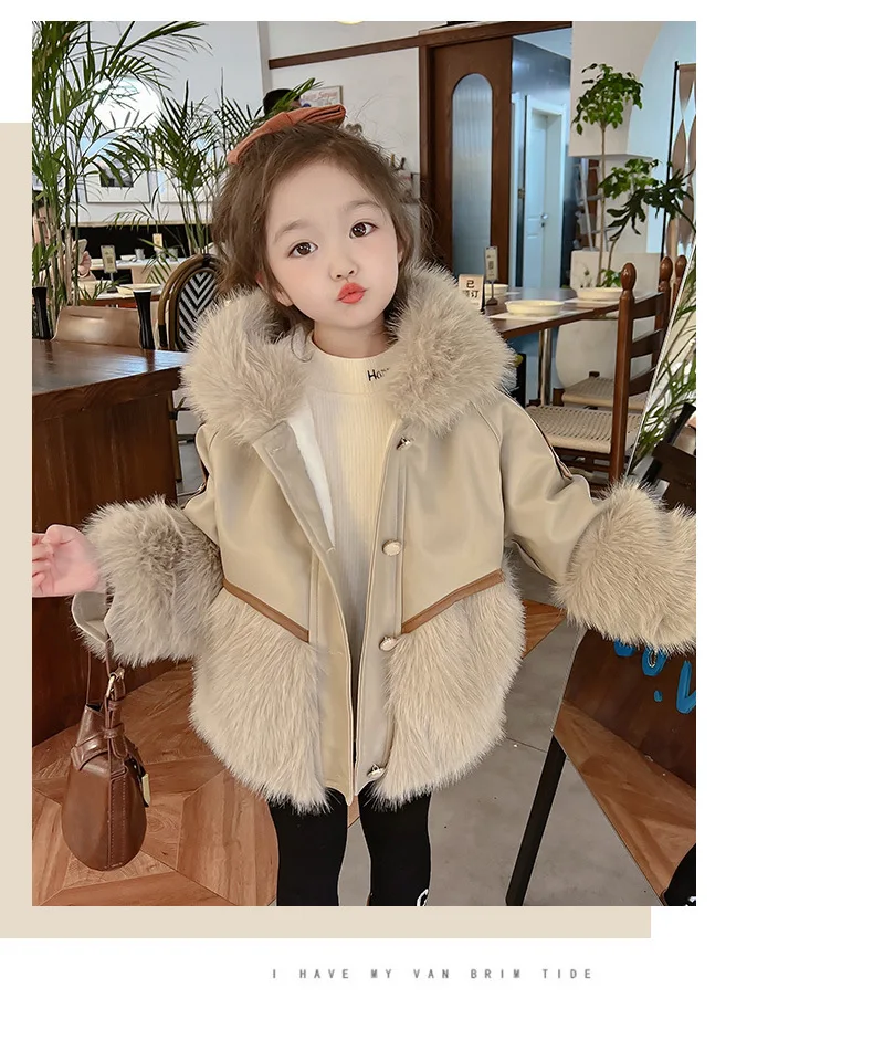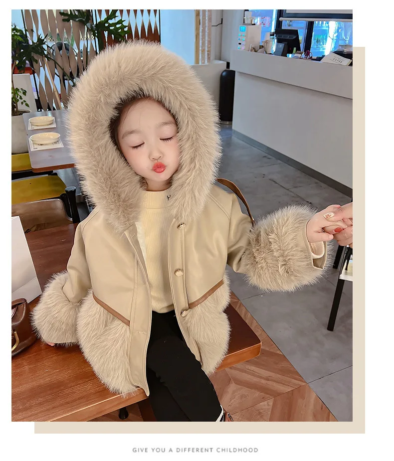 Manteau cuir doublé sourire fille– chaud, élégant, automne hiver