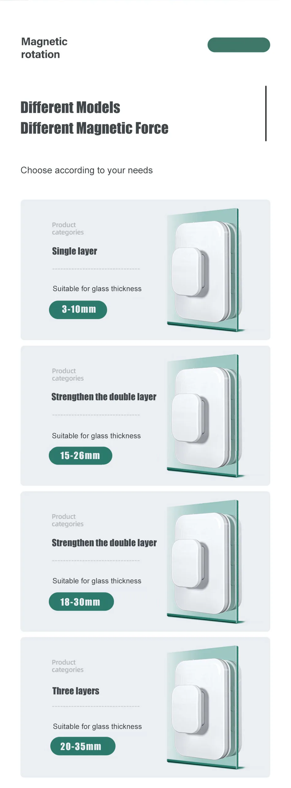 - Dispositif à double aimant, essuyez le verre comme vous le souhaitez