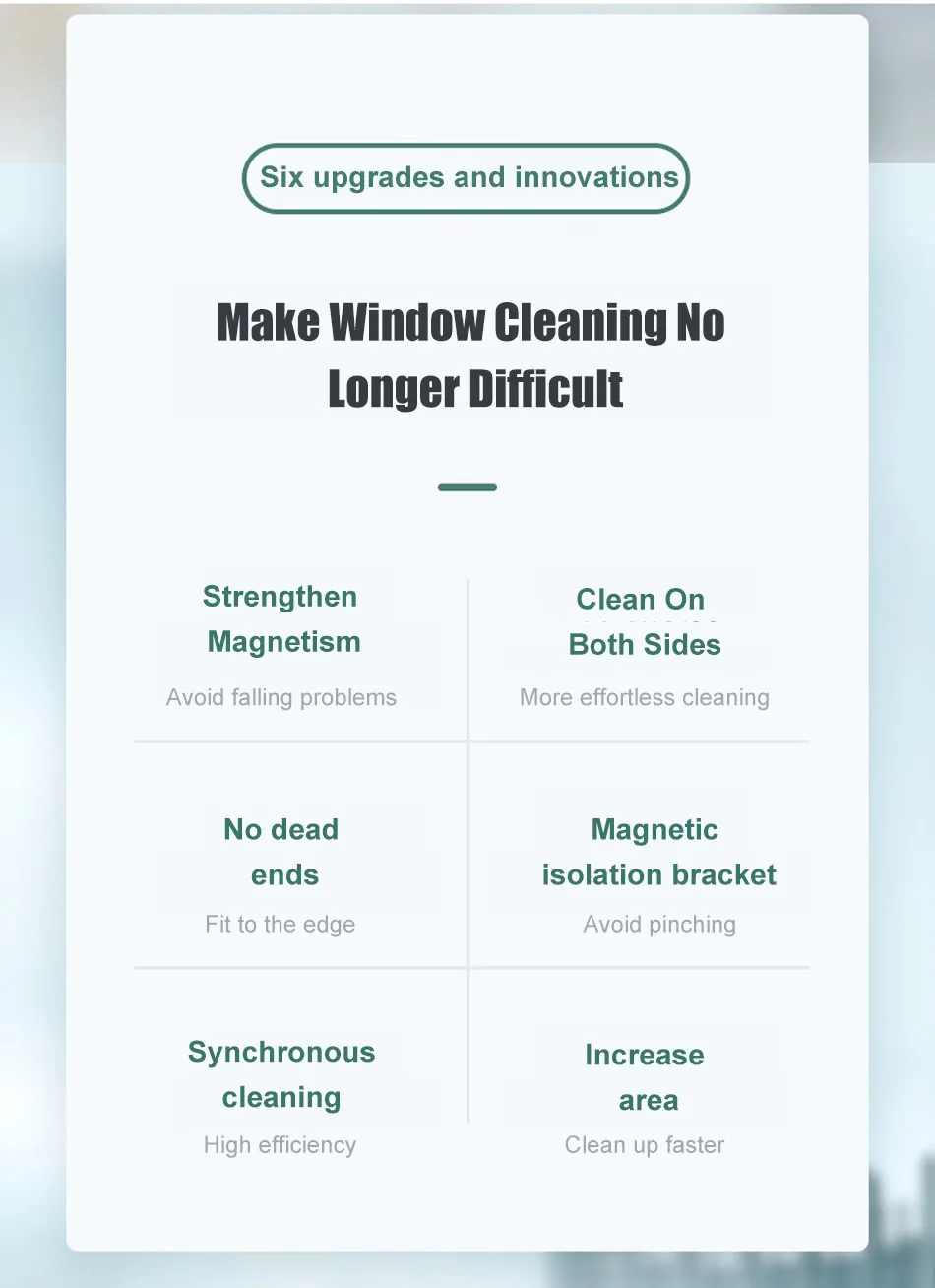 - Conception double face avec aimant puissant, vous pouvez nettoyer chaque coin facilement et en profondeur