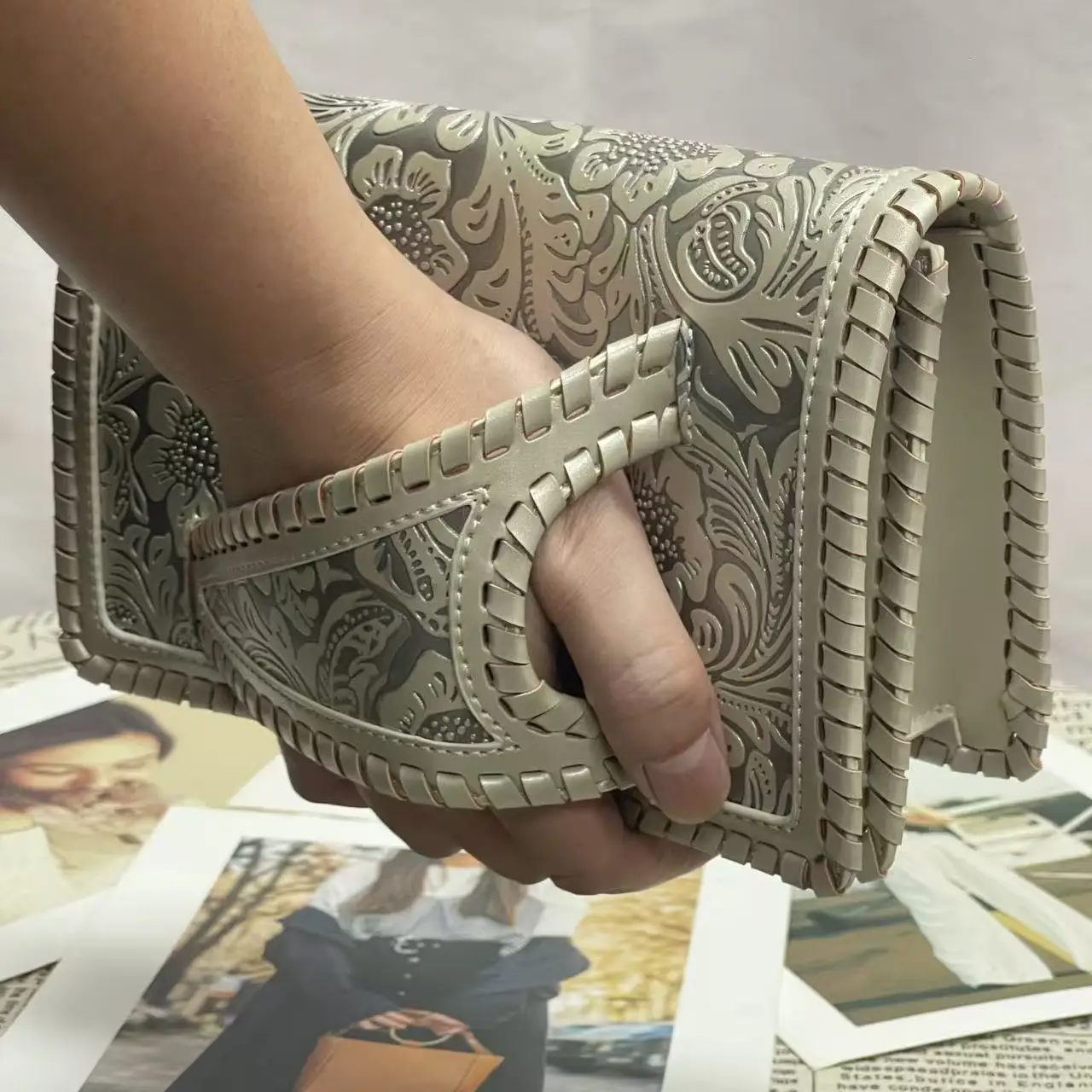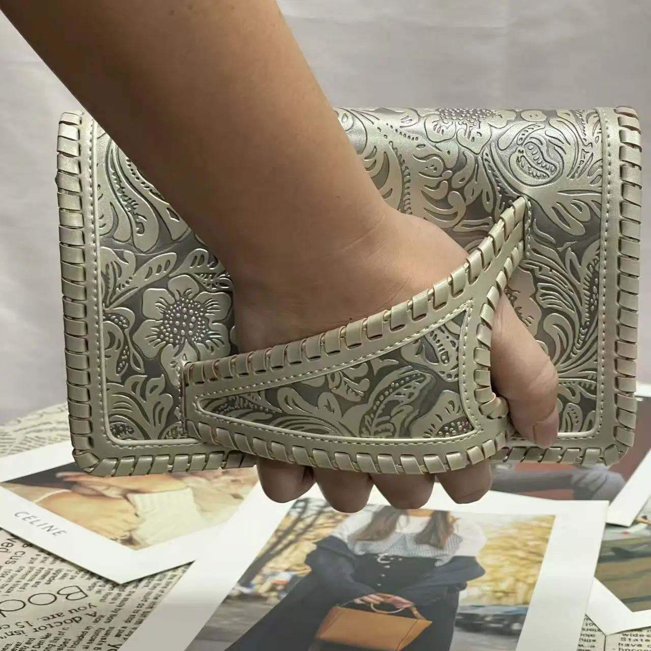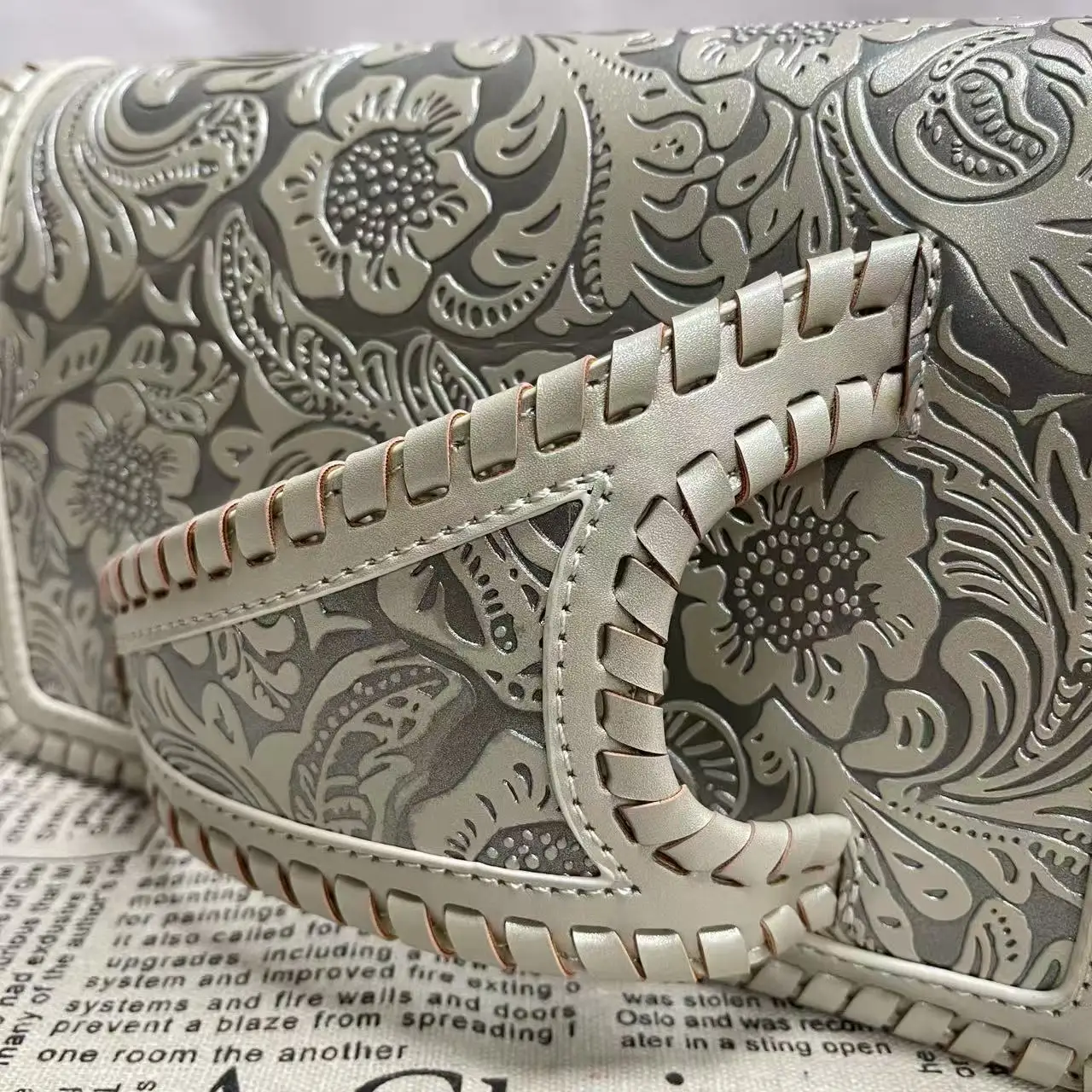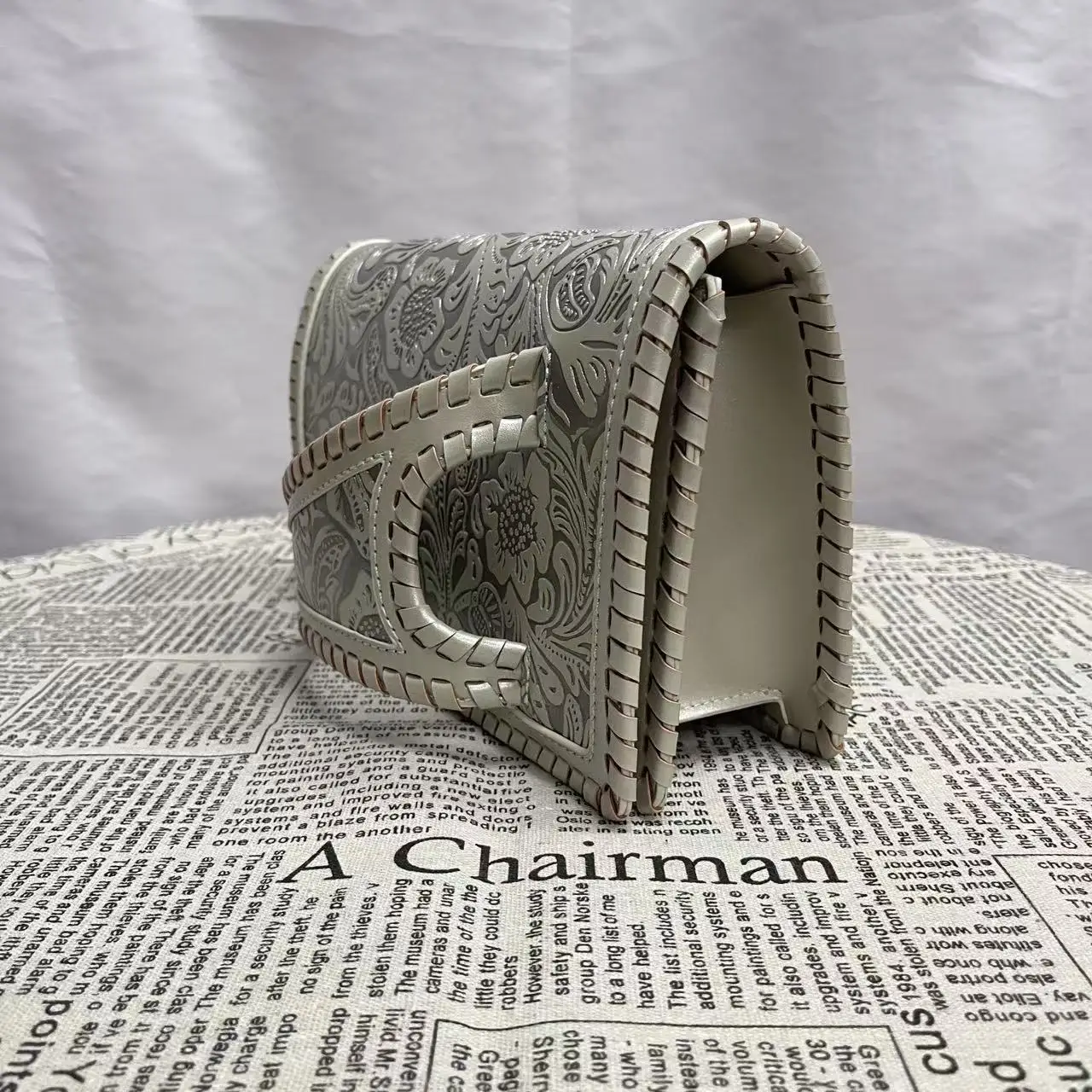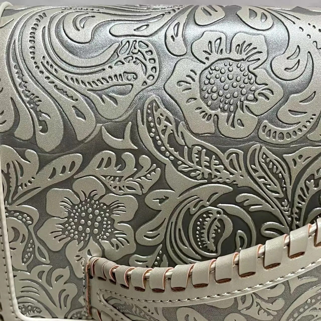 Sac à main femme rétro cuir PU doux – Petit sac de luxe avec imprimé argent élégant banlieue collection