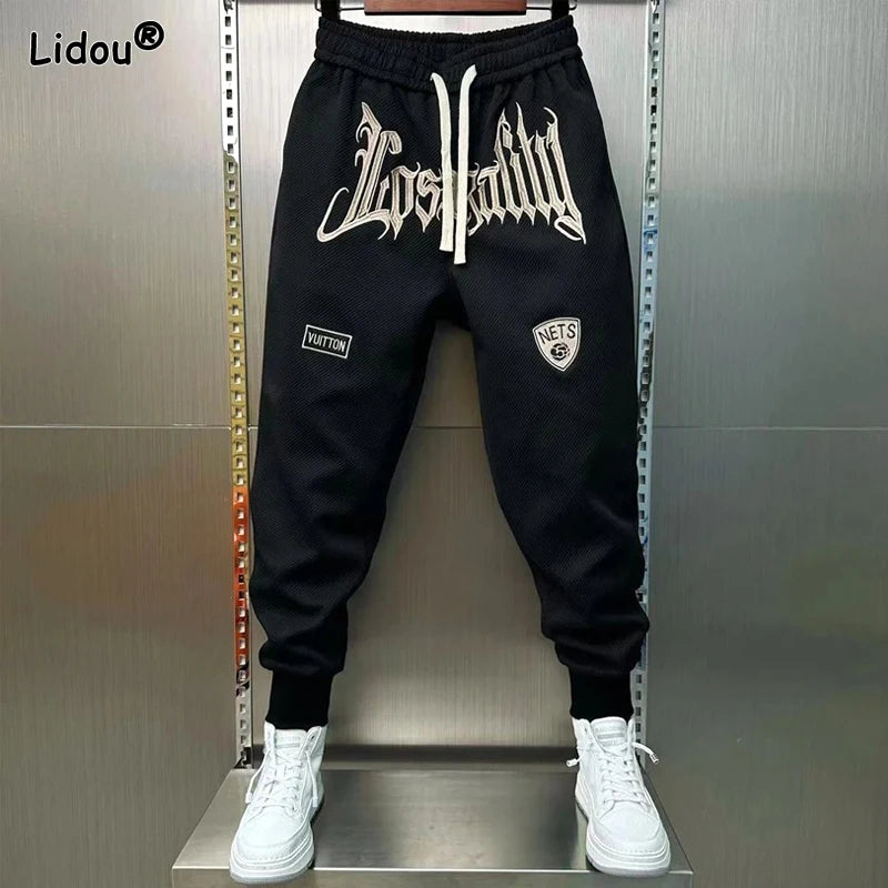 Pantalon Harlan à lacets élastiques brodés pour hommes, poches de pieds, mode décontractée élégante, printemps et automne,