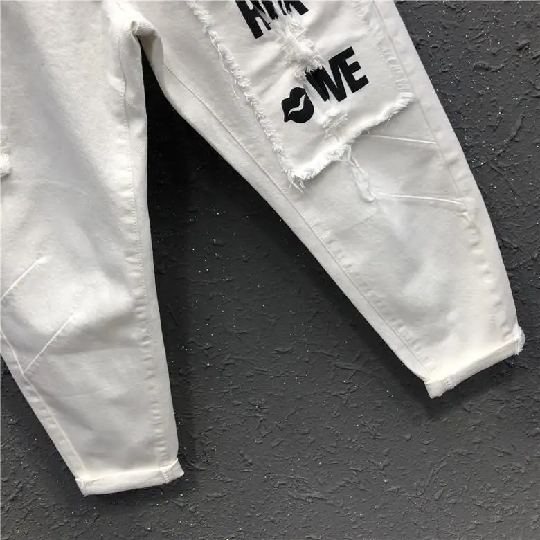 Pantalon Harlan en denim court avec poches, taille haute, lettre plaquée, minimaliste, tendance européenne, décontracté, nouveau, printemps, été