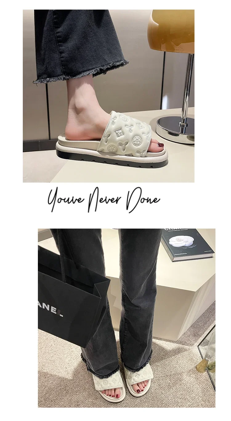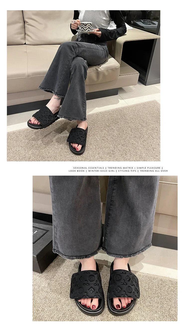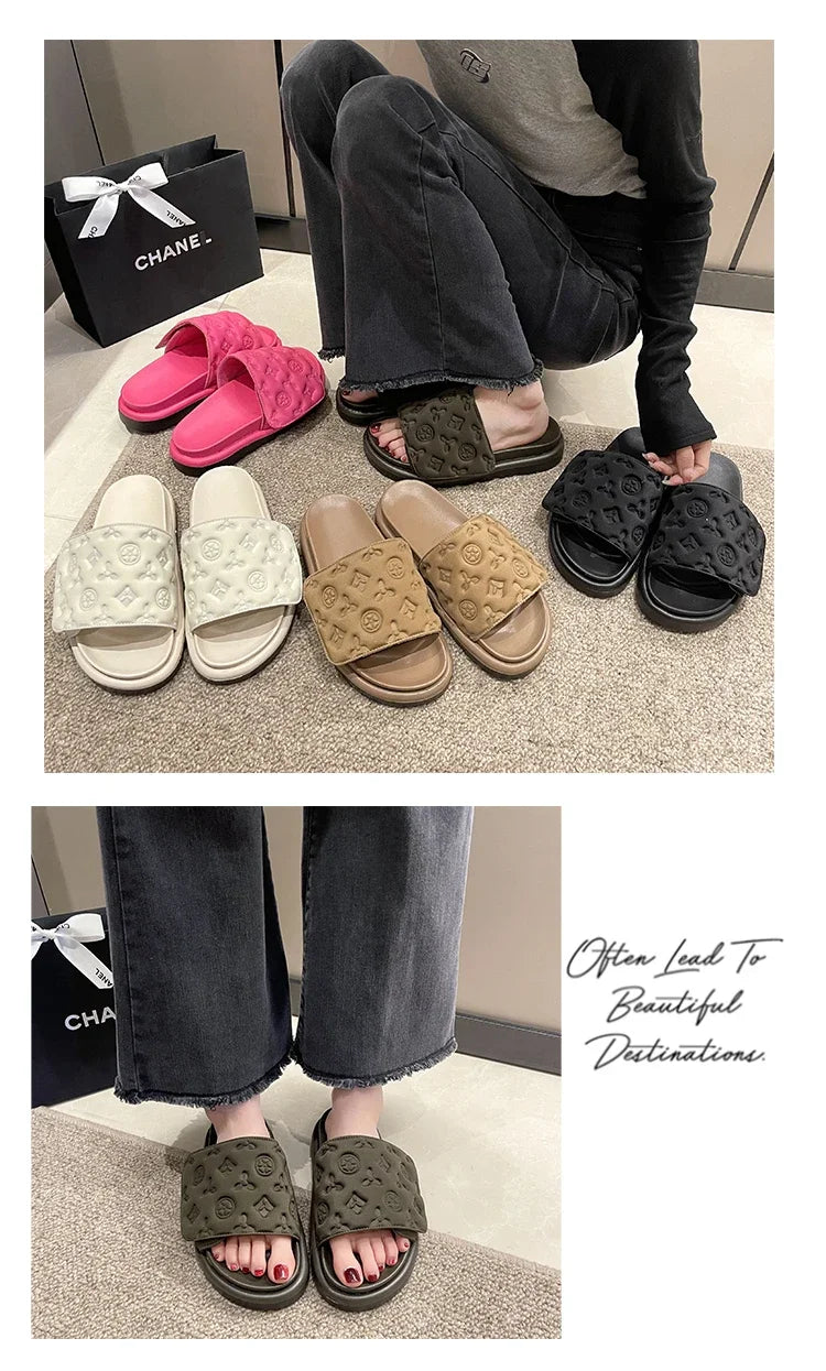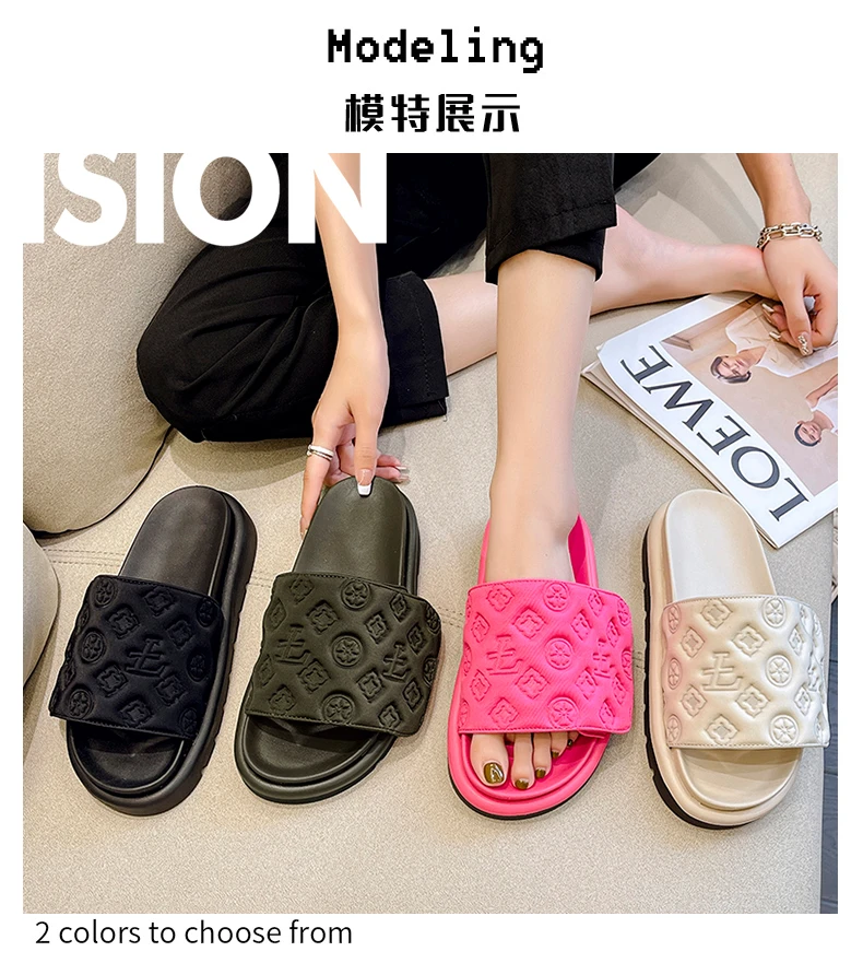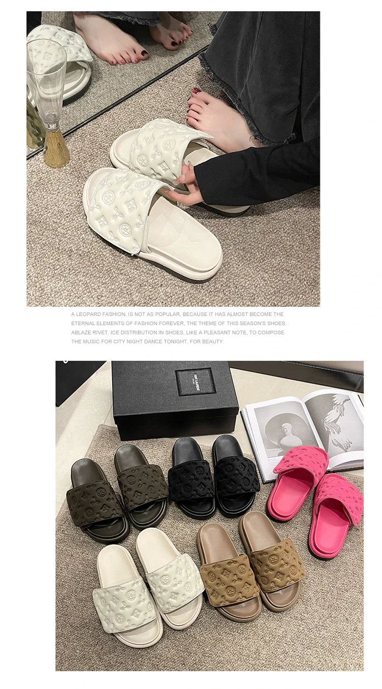 Pantoufles été femme à semelle épaisse, sandales de plage tendance,