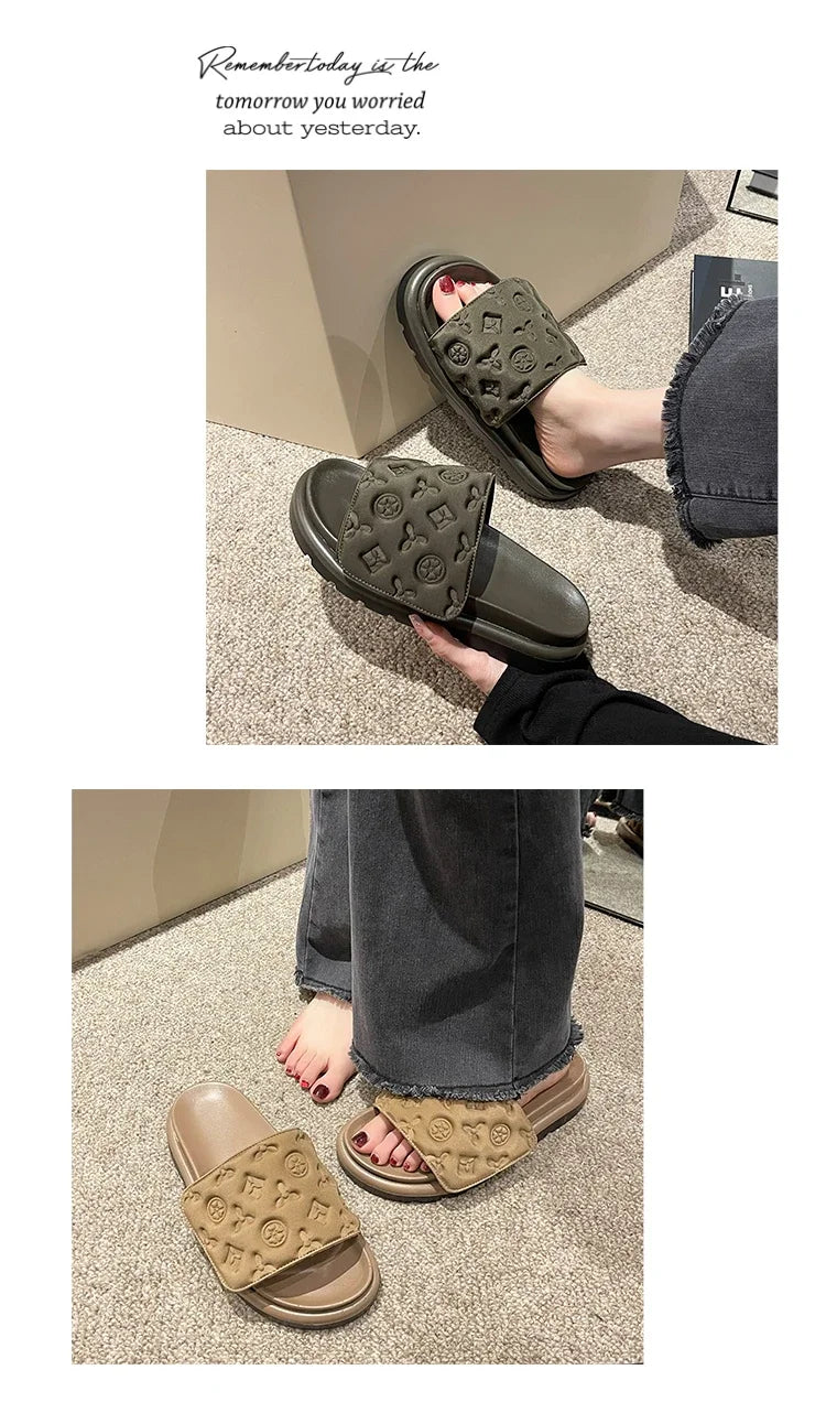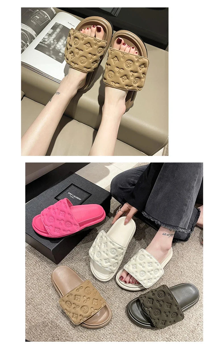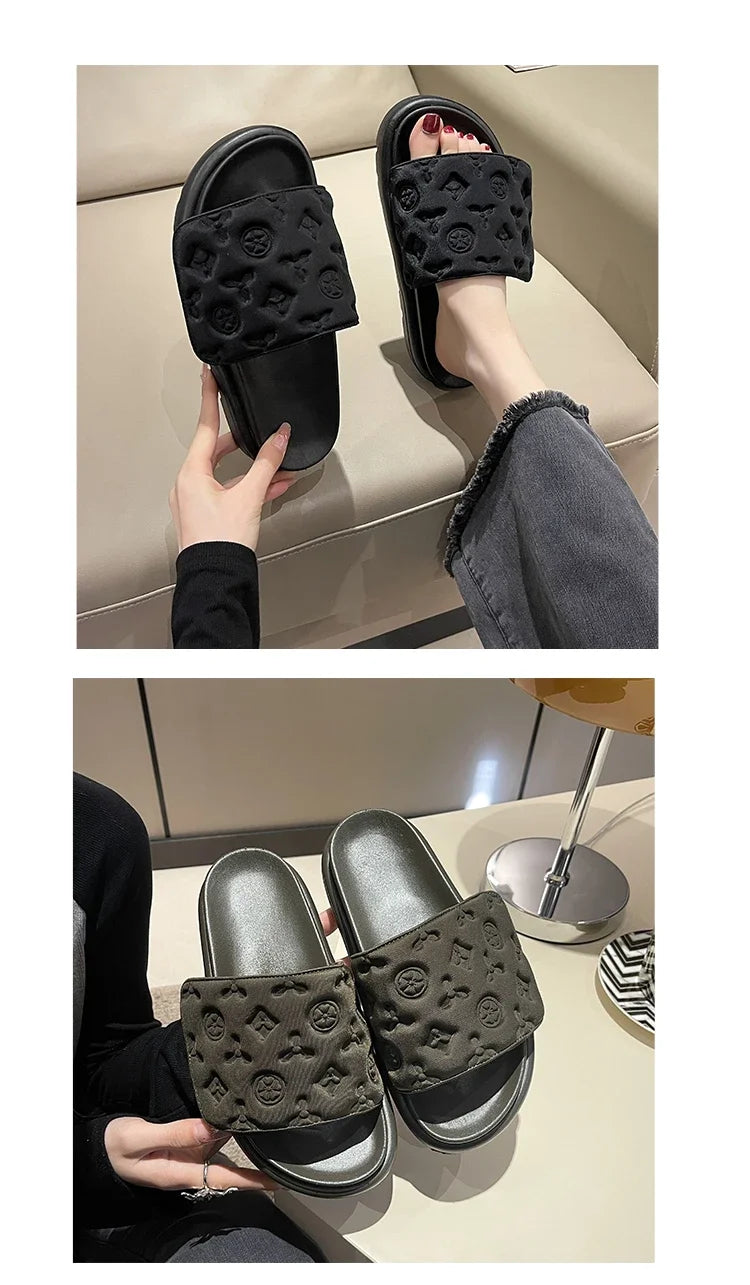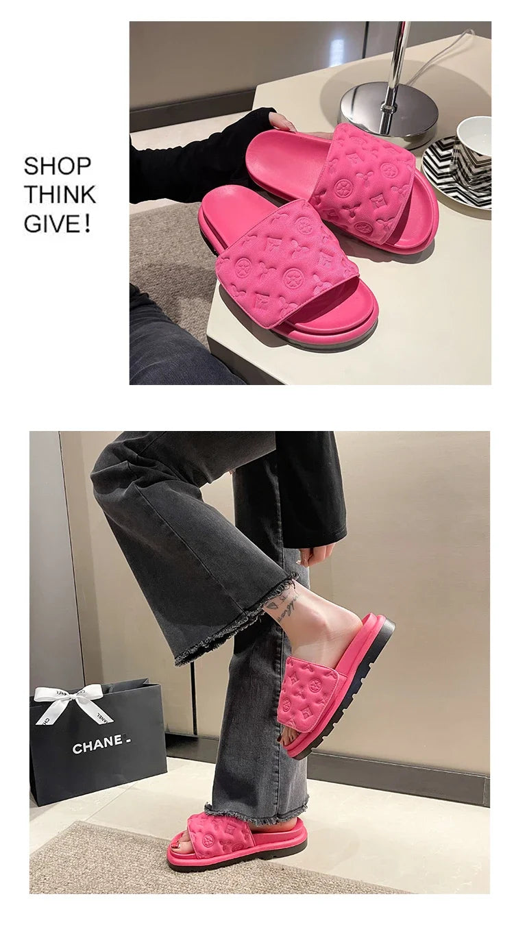 Pantoufles été femme à semelle épaisse, sandales de plage tendance,