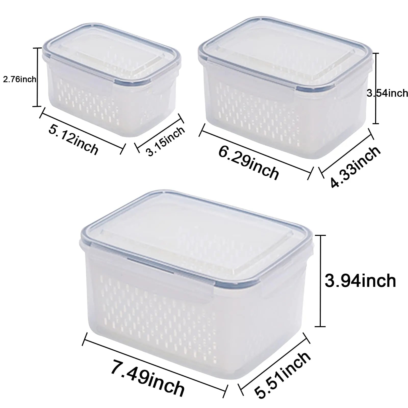 Lot 3 Boîtes de Conservation – Récipients Aliments avec Couvercles & Passoires Réfrigérateur
