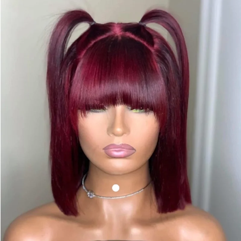 Perruque Bob droite 99J cheveux humains brésiliens – Coupe émoussée sans colle, dentelle frontale, qualité machine, style naturel luxe