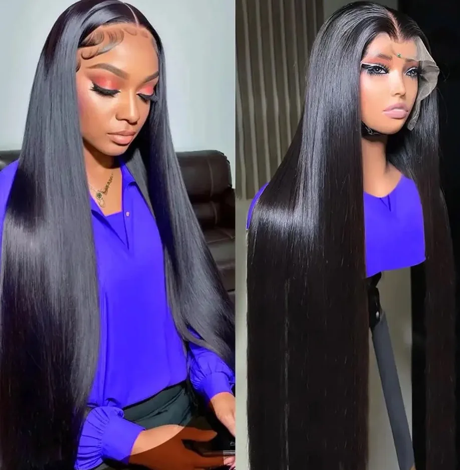 Perruque Lace Front synthétique lisse 13x4 noire, pré-épilée, baby hair, sans colle .