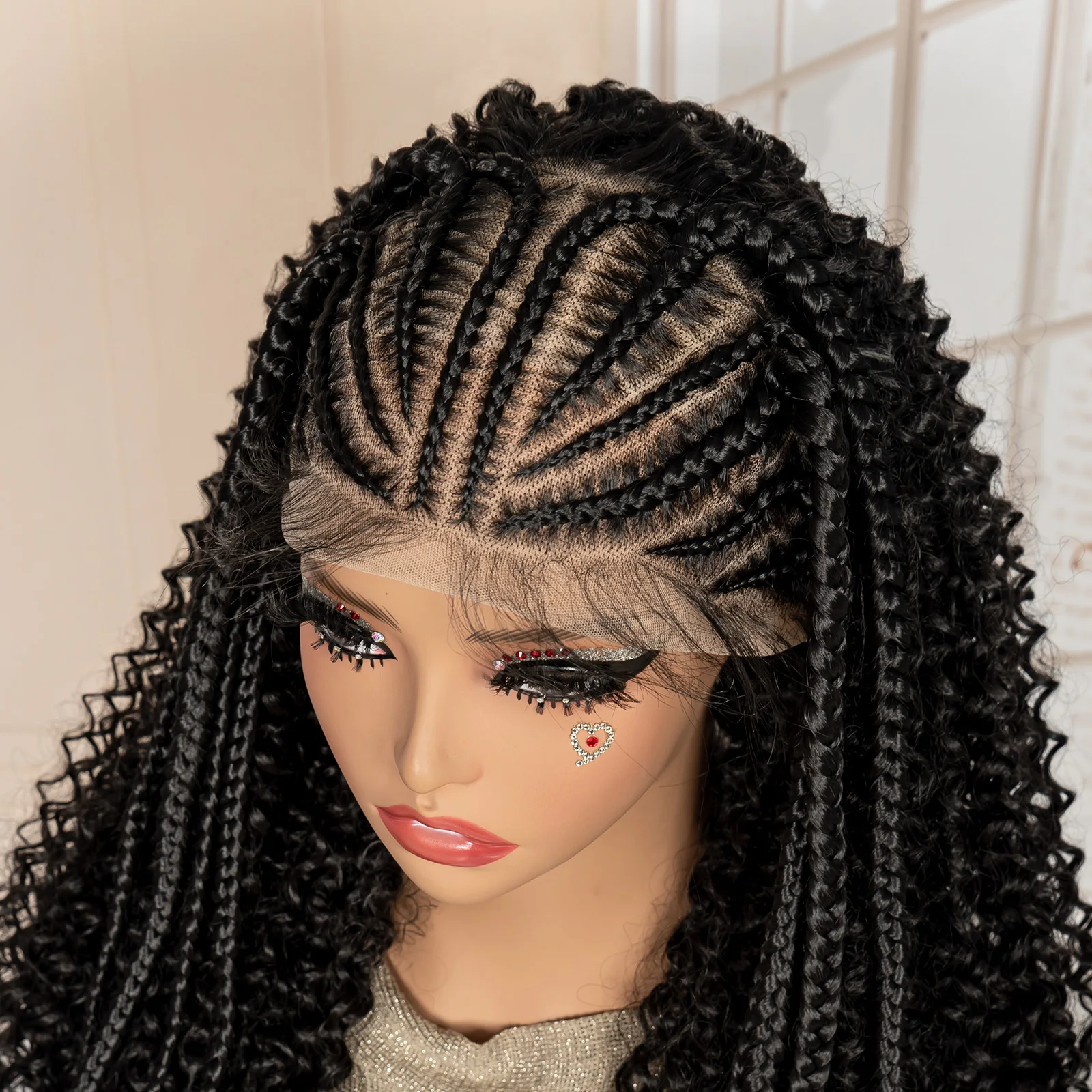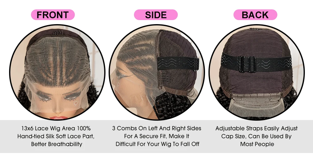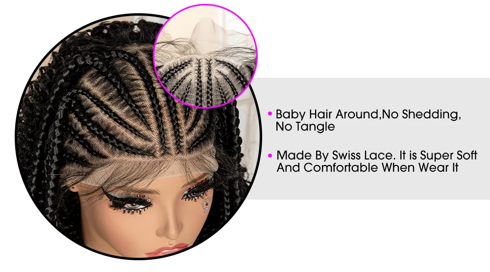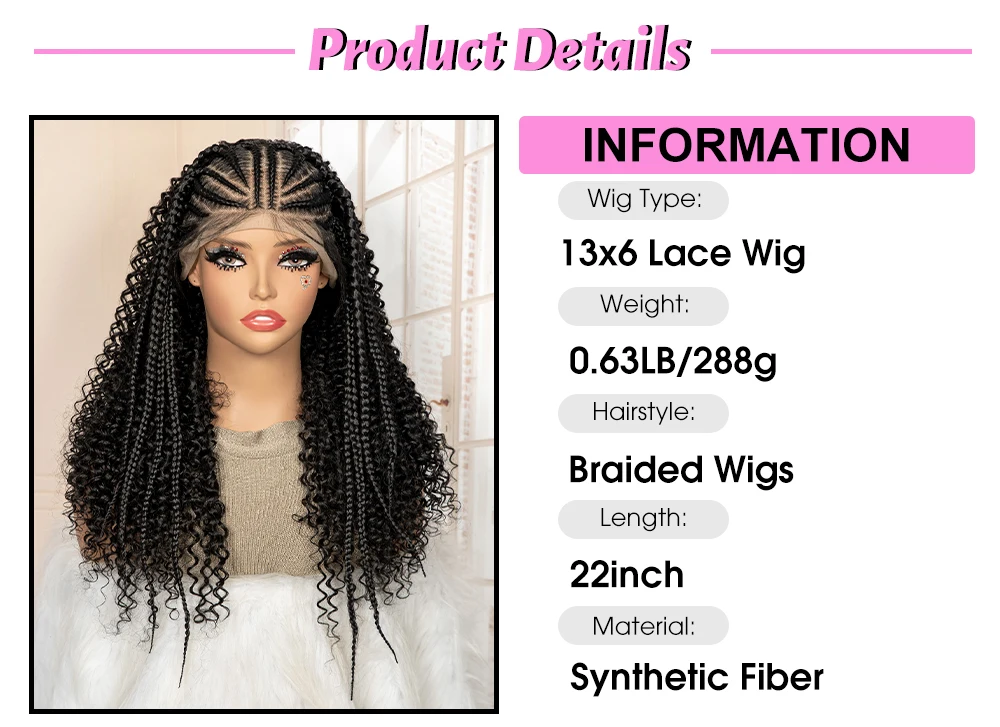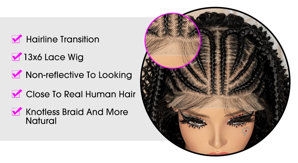 Perruque tressée synthétique Lace Frontal 13x6 22 pouces Cornrow bouclé sans nœuds