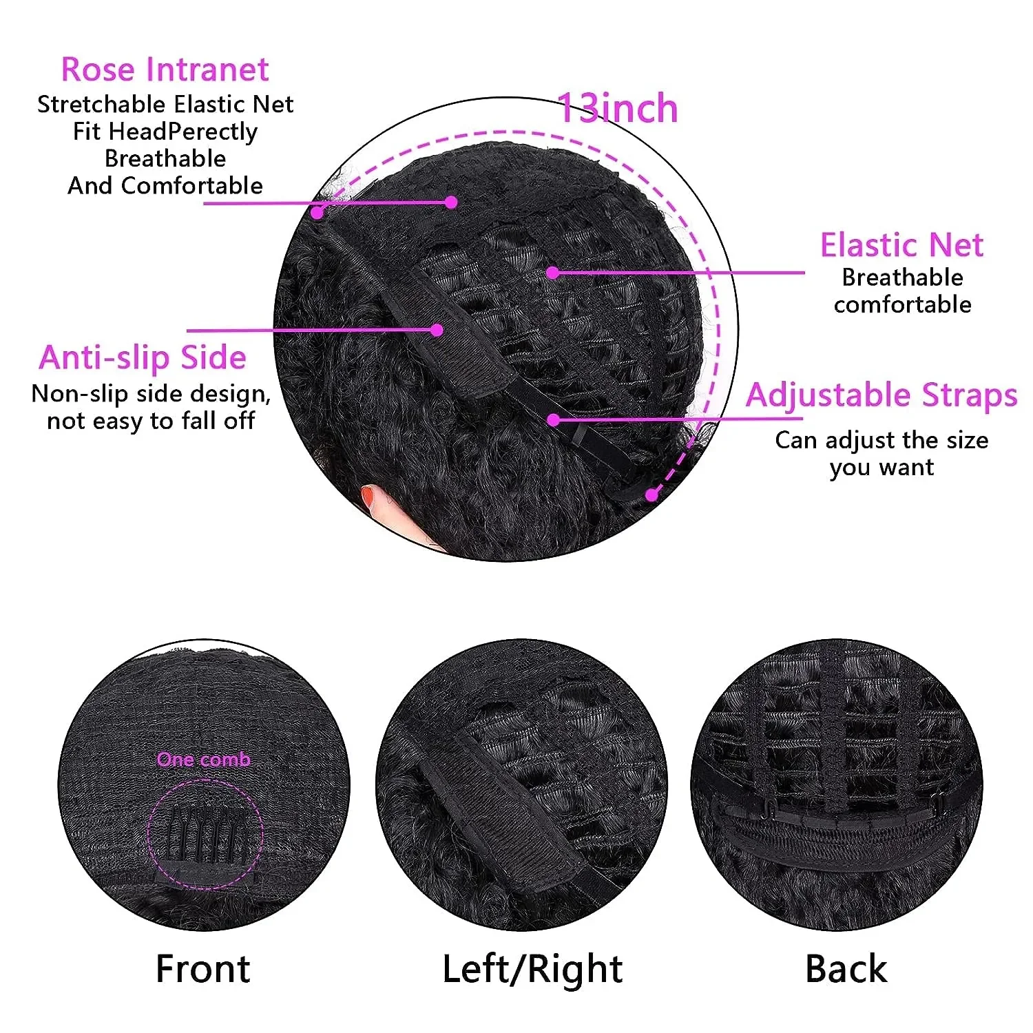 Perruques de cheveux humains Afro courtes crépues bouclées avec frange perruques Bob naturelles moelleuses perruques brésiliennes entièrement fabriquées à la Machine en vente 180% densité