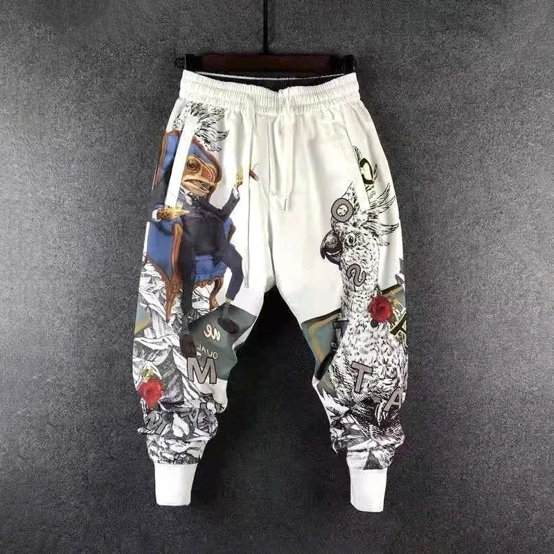 Pantalon Haren ample homme, élastique à lacets, poche imprimée, style coréen printemps-automne