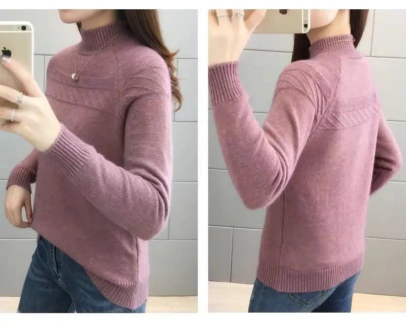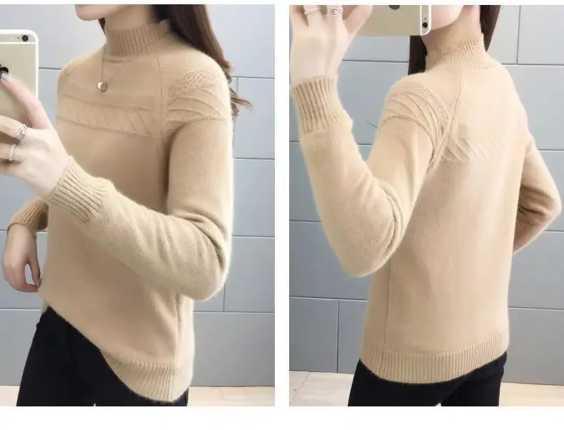 Pull femme col montant style coréen hiver chaud