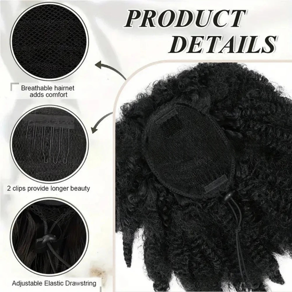 Queue de cheval synthétique courte avec cordon de serrage, Afro crépus bouclés, cheveux Afro bouclés, queue de cheval synthétique à basse température